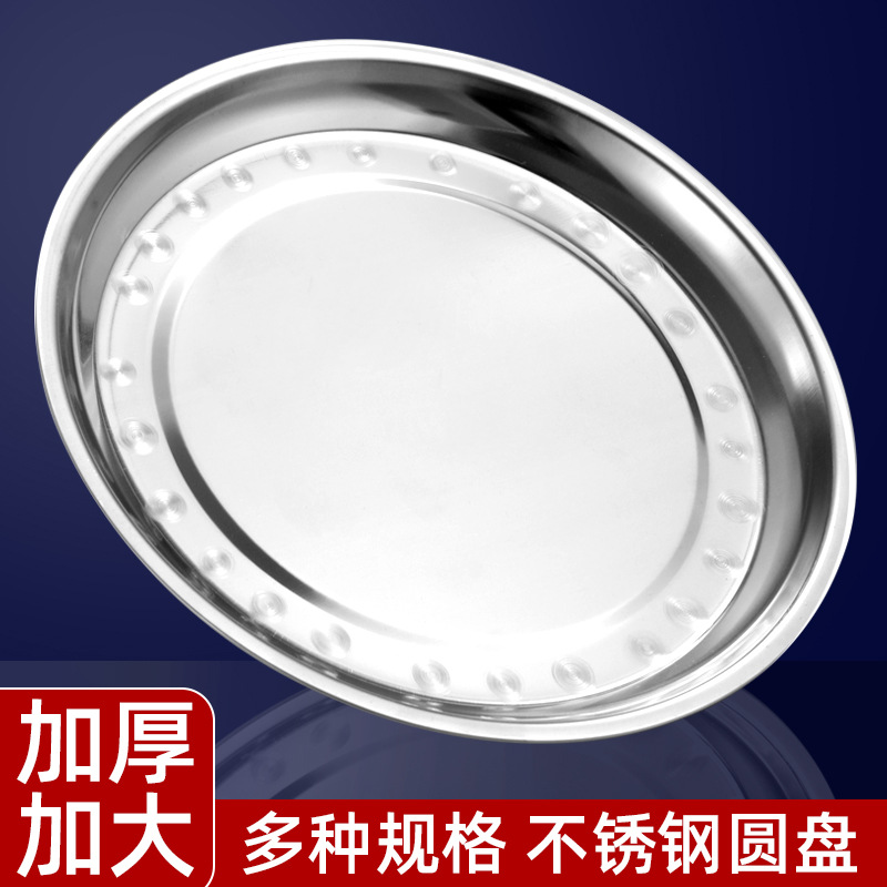 두꺼운 스테인레스 스틸 대형 접시 가정용 트레이 상업용 케이크 접시 캔틴 디너 접시 원형 접시 대형 찜 접시 무료 배송스토어 가기