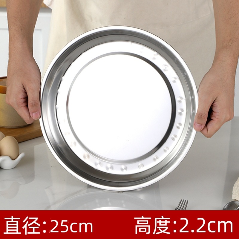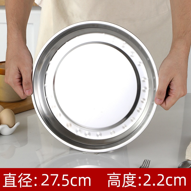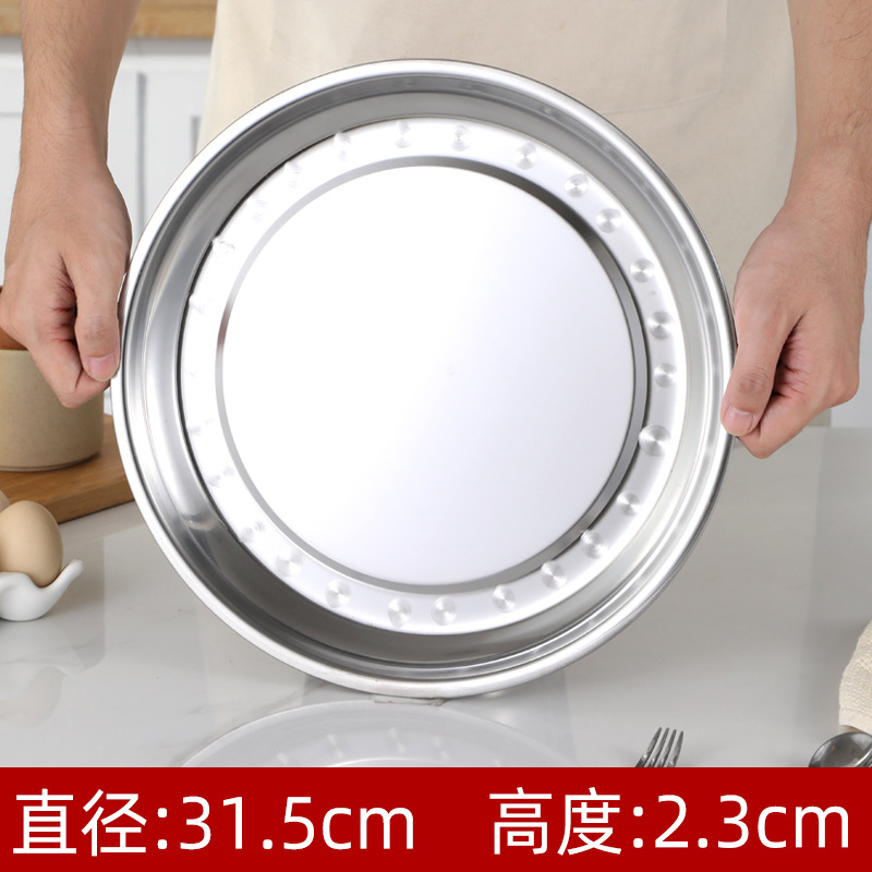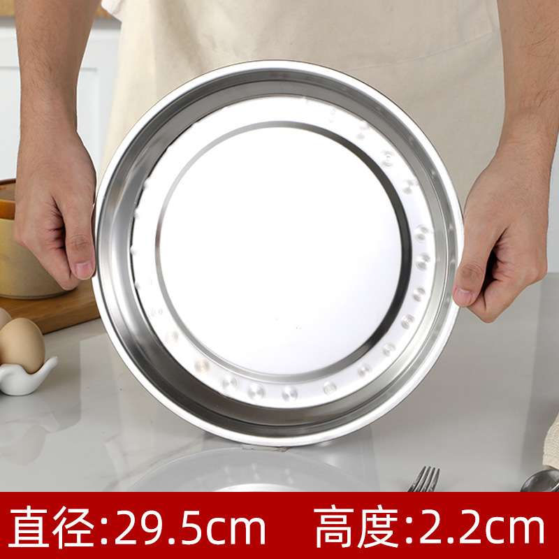 두꺼운 스테인레스 스틸 대형 접시 가정용 트레이 상업용 케이크 접시 캔틴 디너 접시 원형 접시 대형 찜 접시 무료 배송
