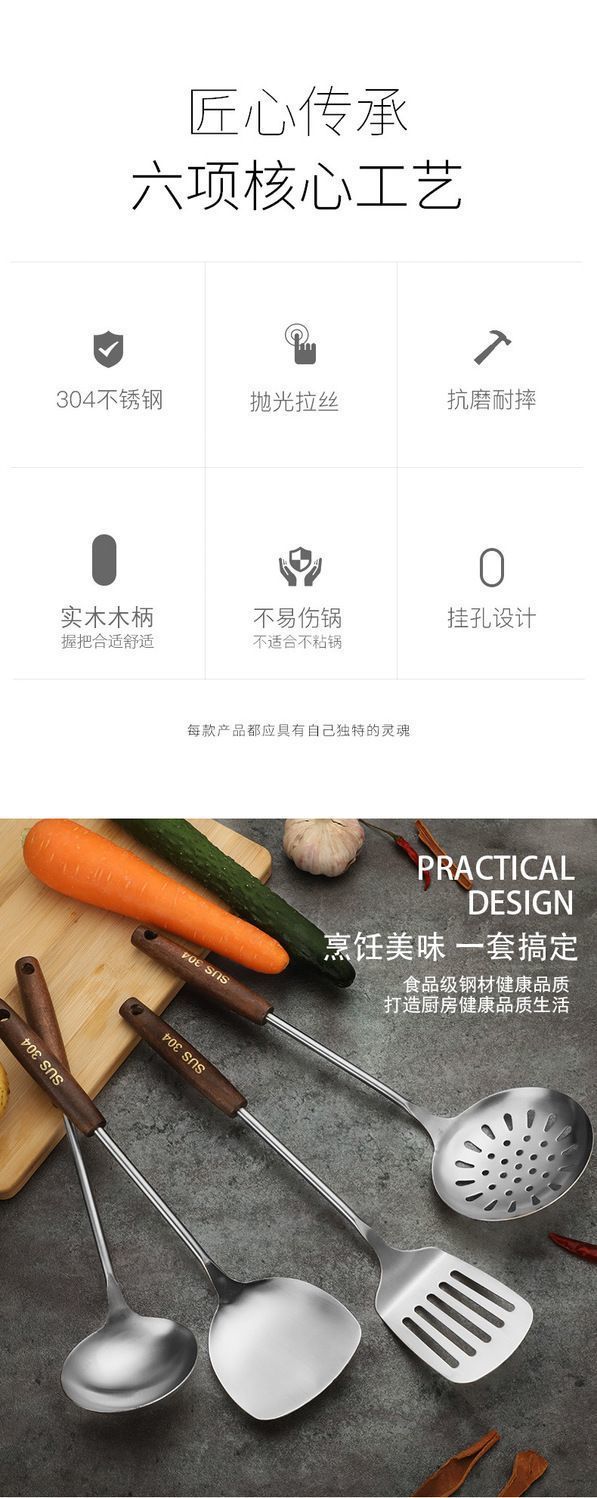 스테인리스 주걱 나무 손잡이 조리용 숟가락 가정용 주방 방열 조리도구 세트
