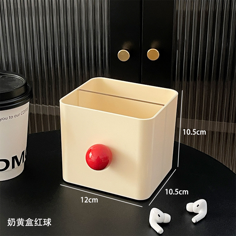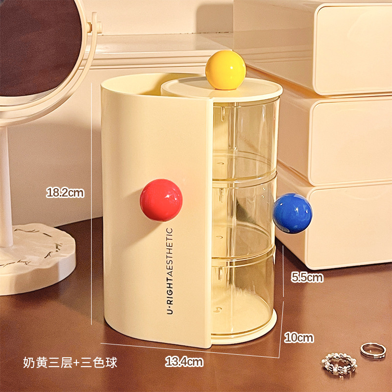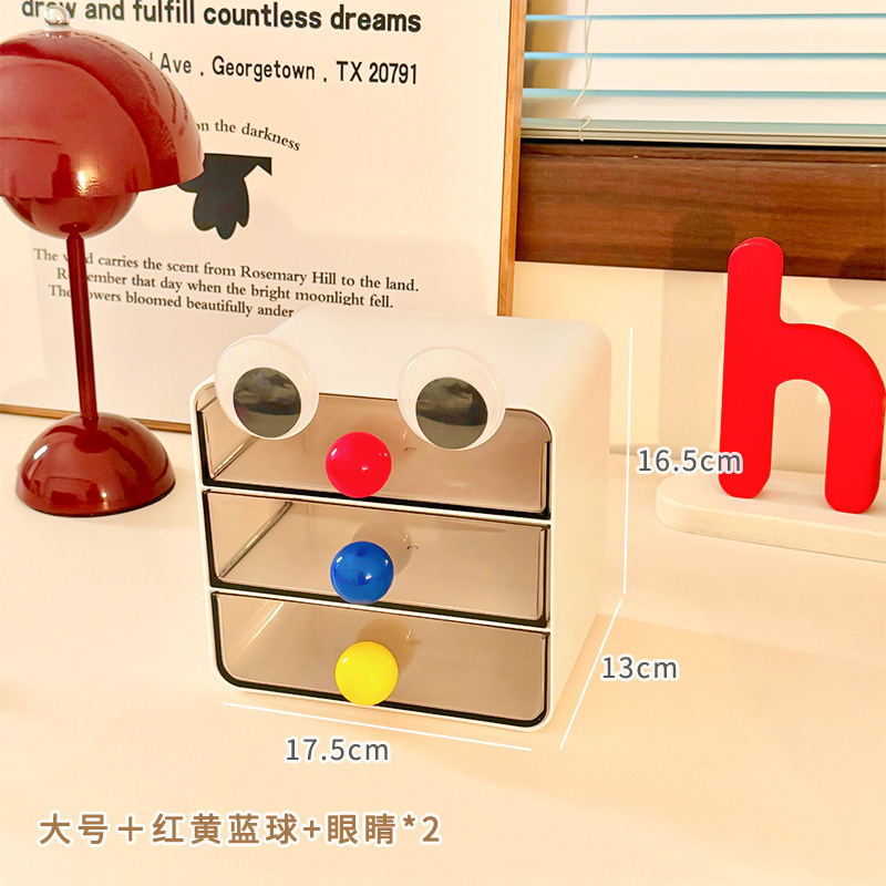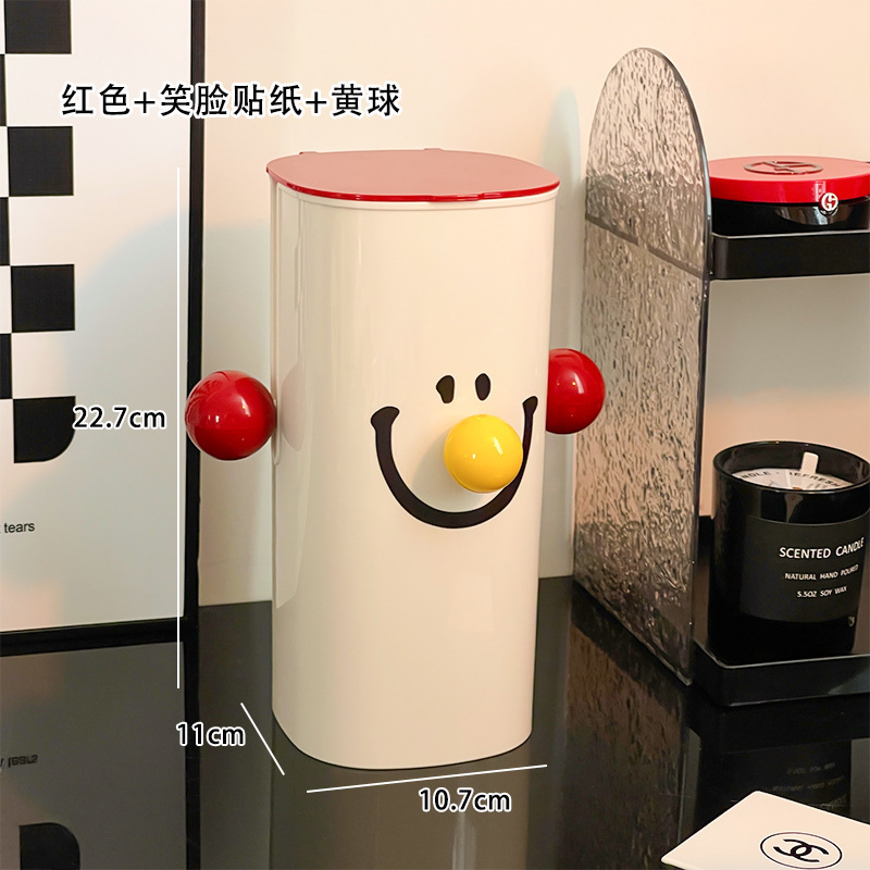 • 리프팅 메이크업 수납함 - 레드 + 웃는 얼굴 스티커 + 노란색 볼