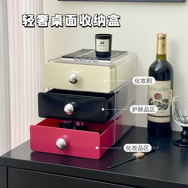 • 가볍고 고급스러운 투명 수납박스 - 블랙 + 핑크 + 화이트