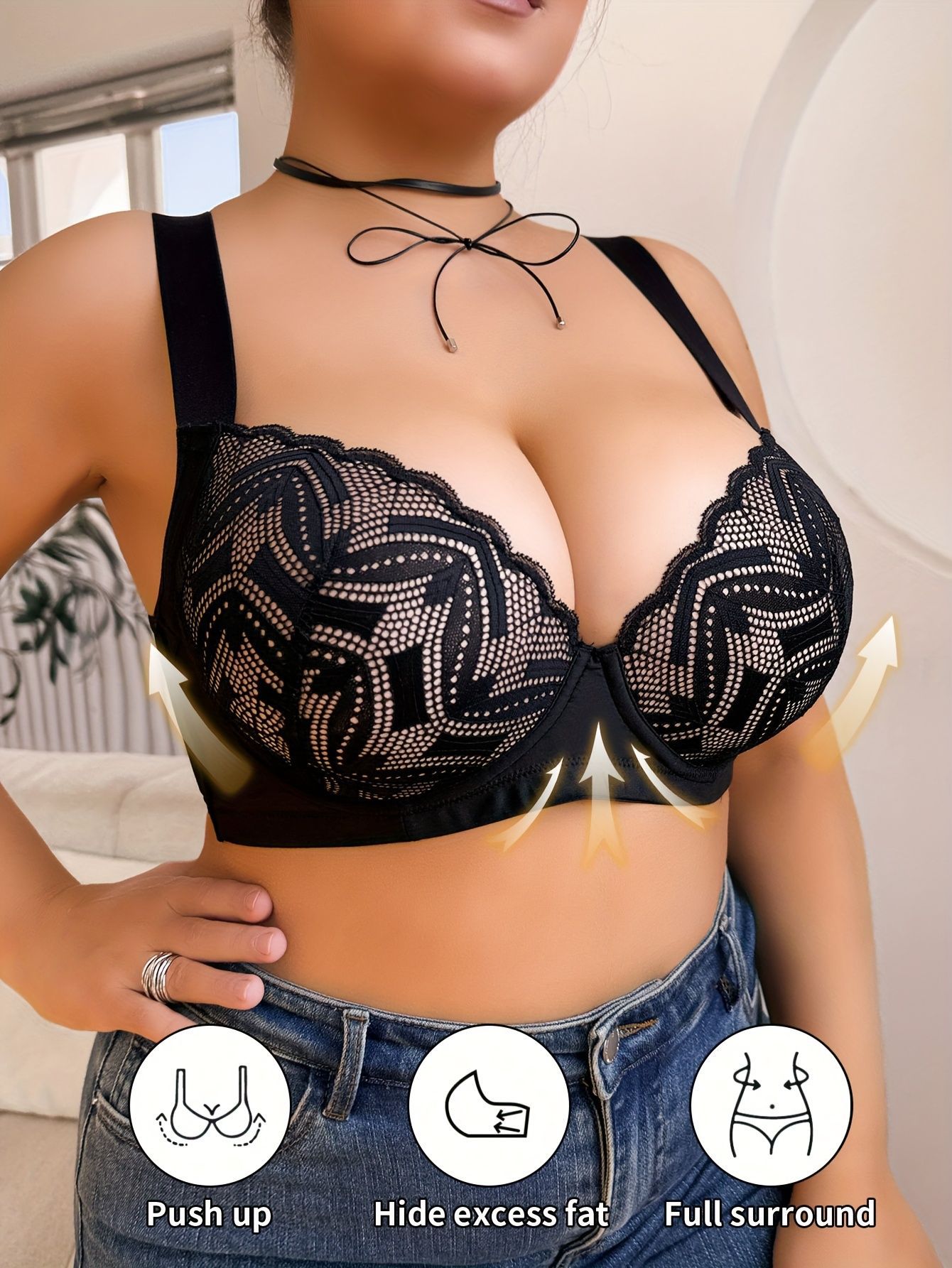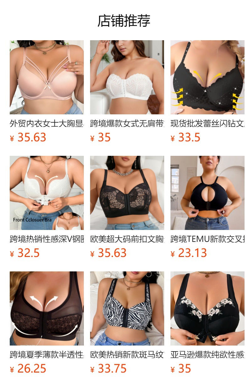 여성용 크로스보더 플러스 사이즈 레이스 섹시 속옷, 푸쉬업, 가슴축소, 처짐방지, 언더와이어브라, 딥브이브라스토어 가기