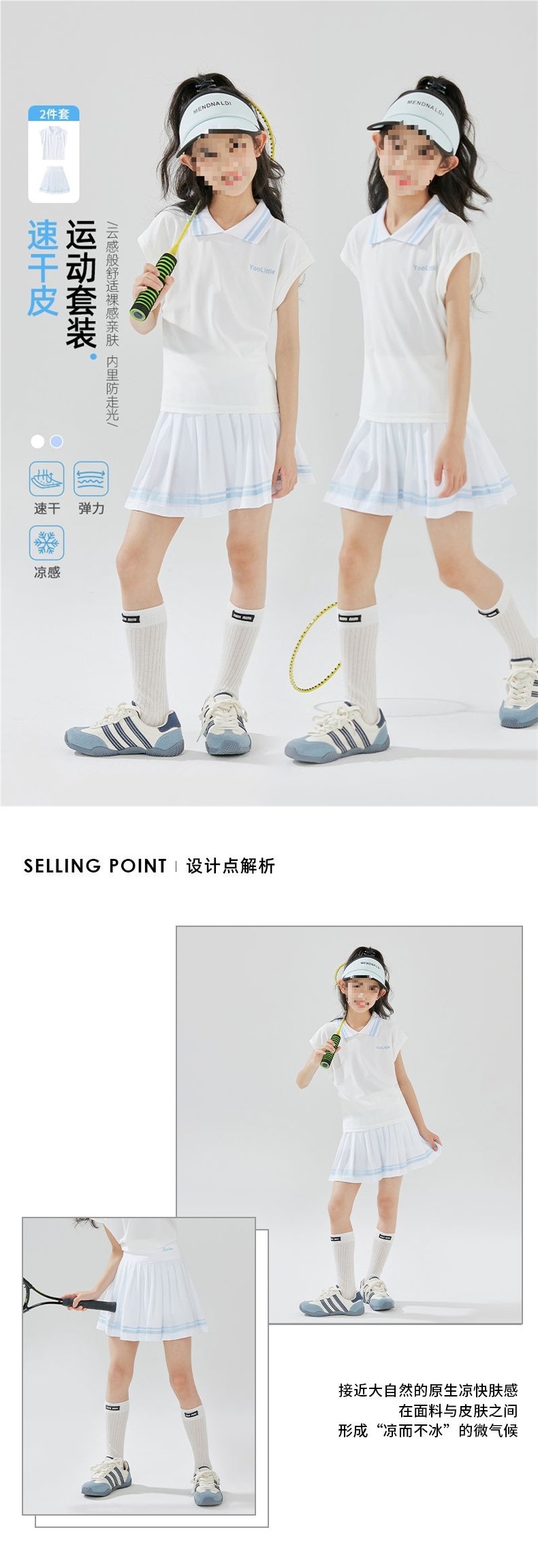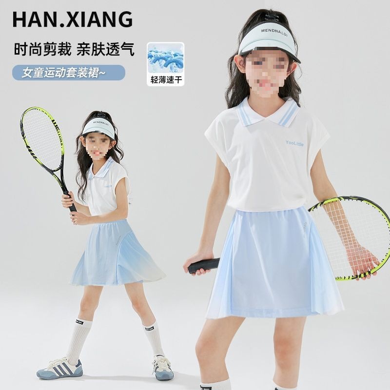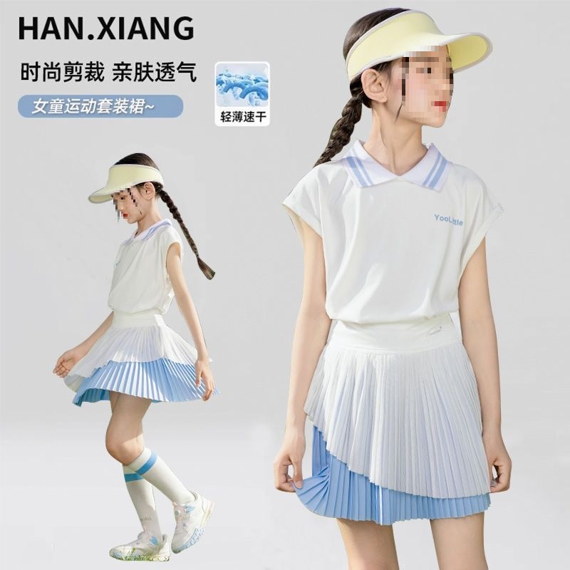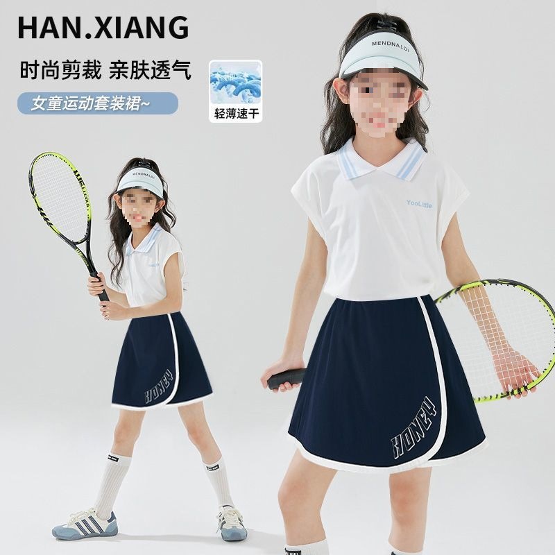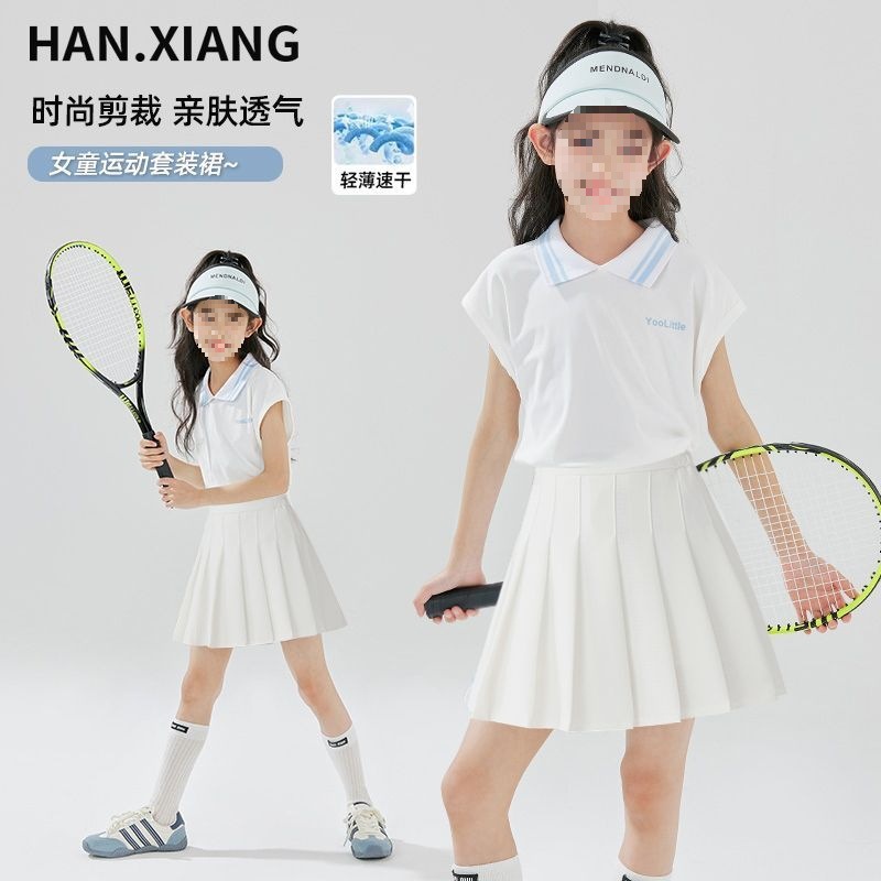 여아 테니스 슈트, 아동 여름 반팔 속건복, 배드민턴 슈트, 여아 골프 스포츠 투피스 슈트