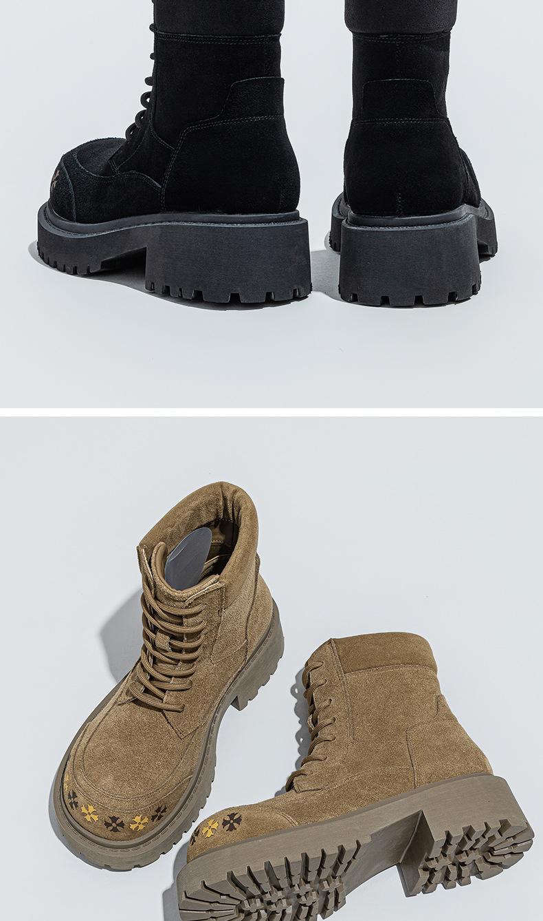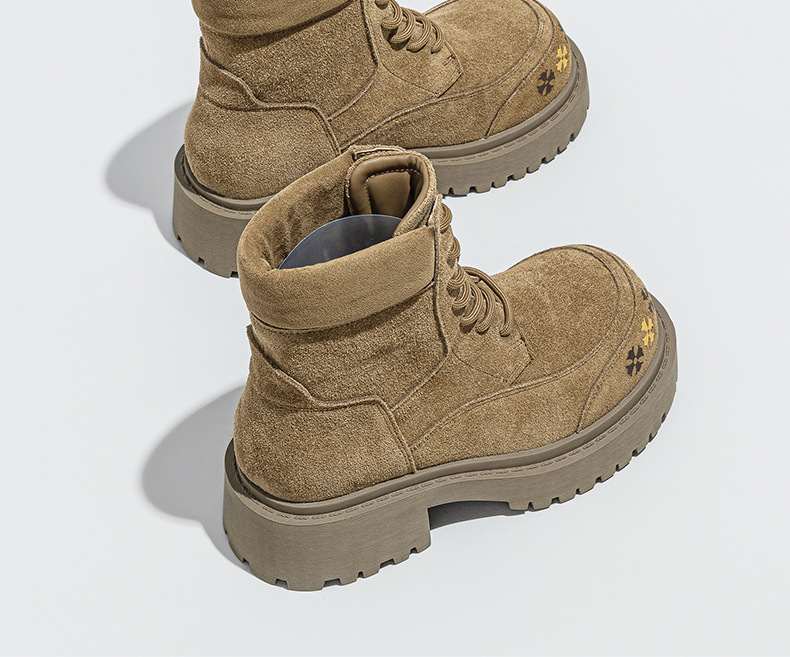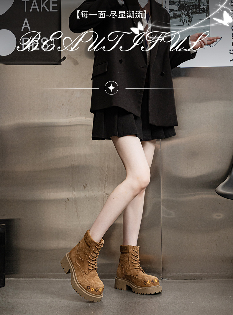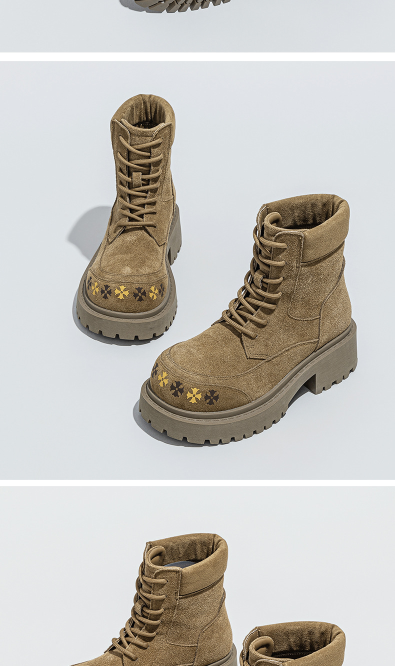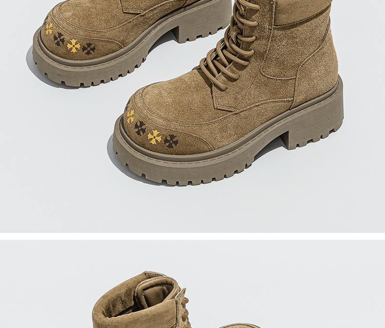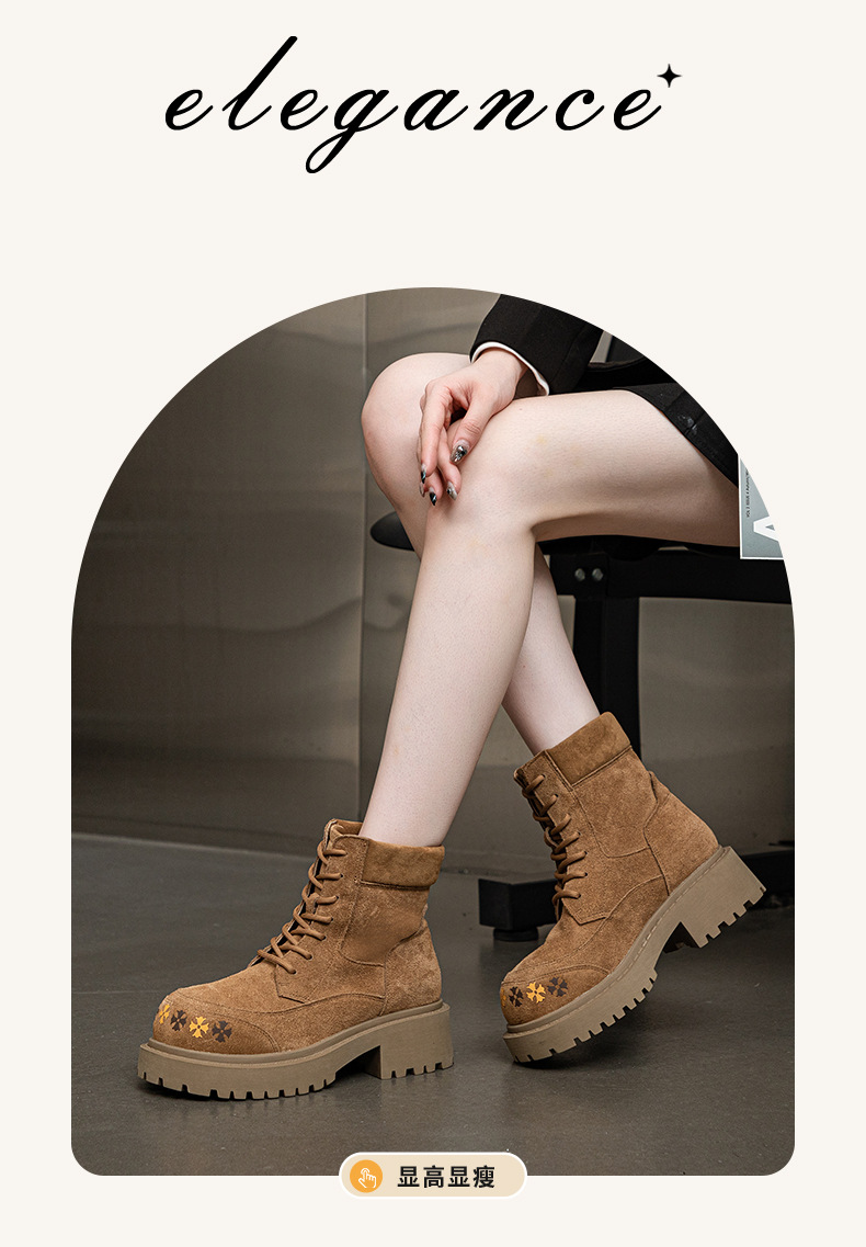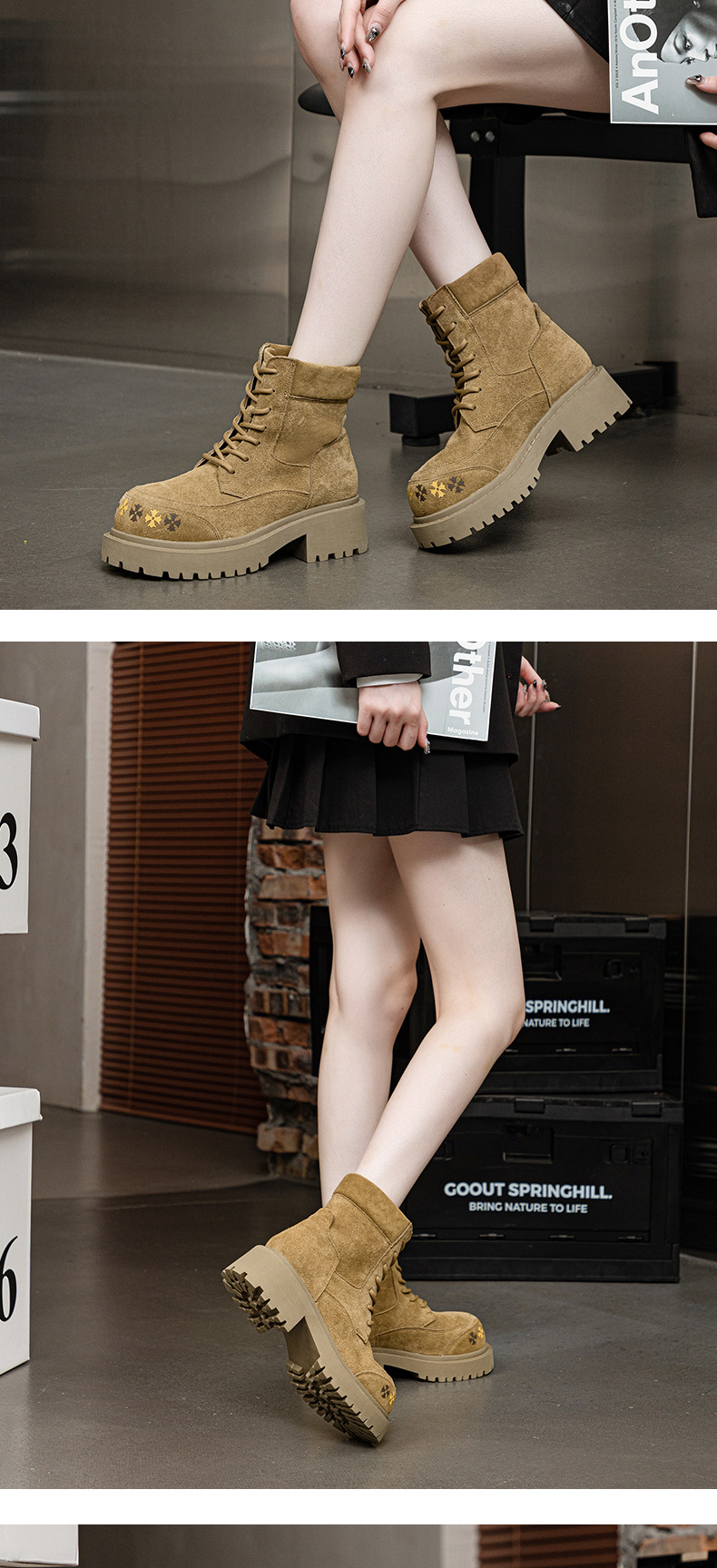 여성을위한 소 가죽 젖빛 마틴 부츠 2025 가을, 겨울 새로운 복고풍 두꺼운 밑창 오토바이 부츠 영국 스타일 작업복 레이스 업 짧은 부츠