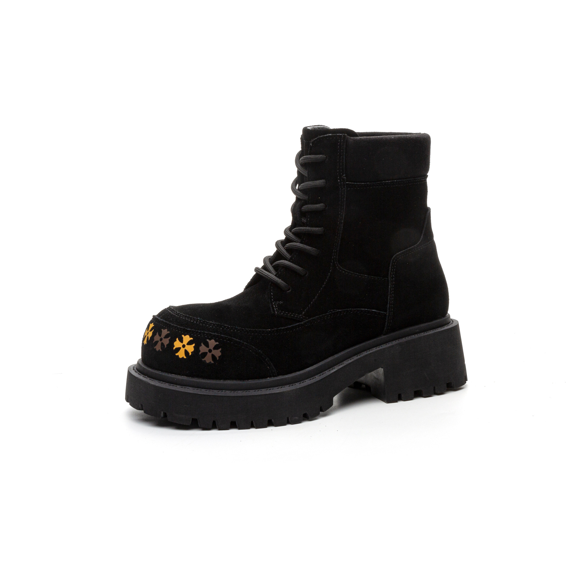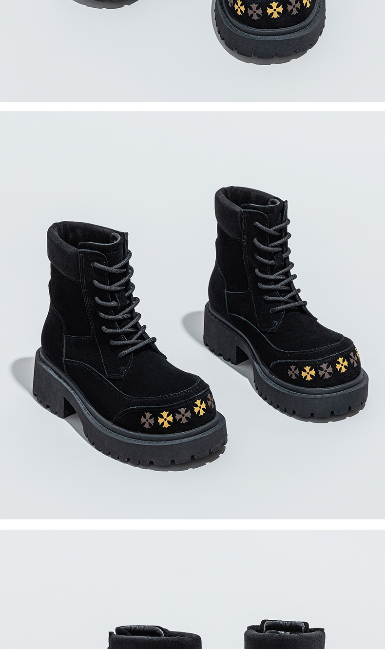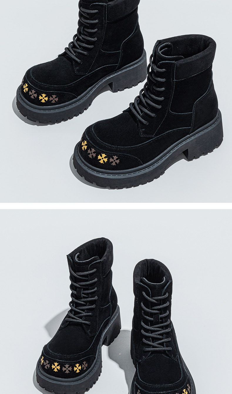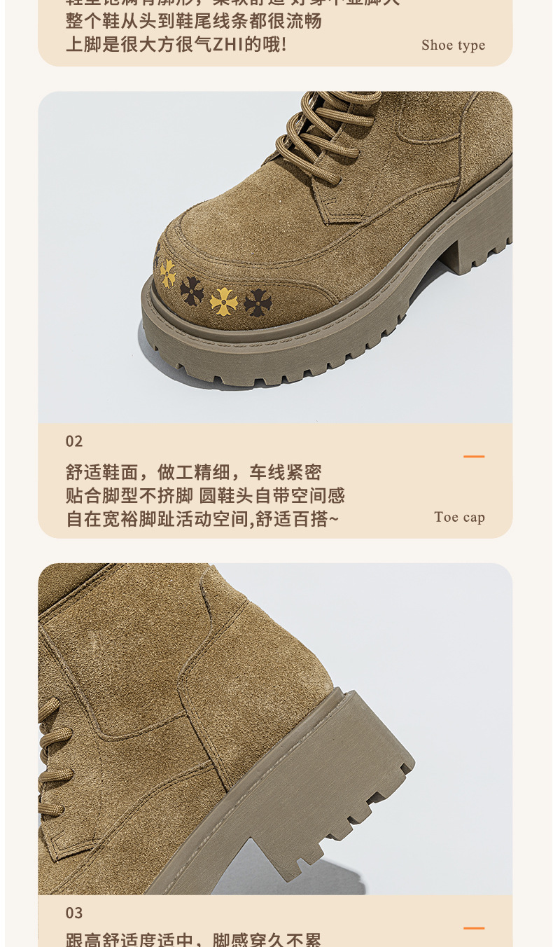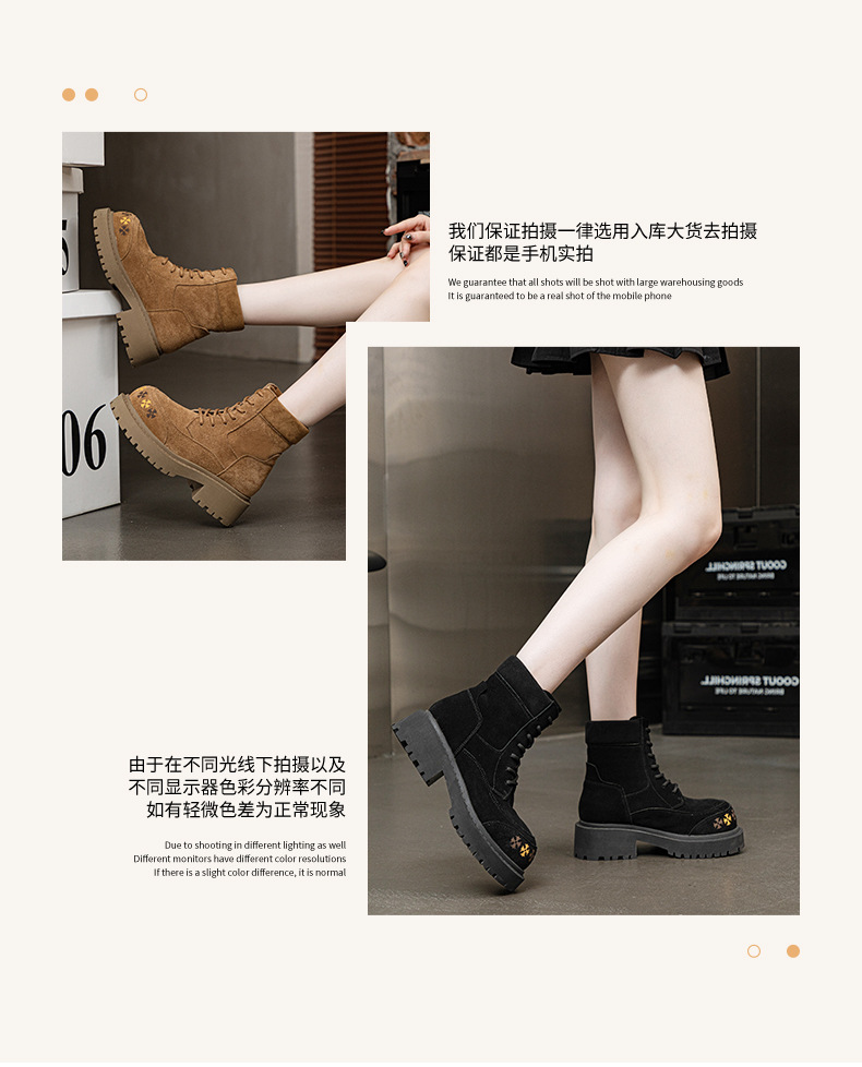 여성을위한 소 가죽 젖빛 마틴 부츠 2025 가을, 겨울 새로운 복고풍 두꺼운 밑창 오토바이 부츠 영국 스타일 작업복 레이스 업 짧은 부츠
