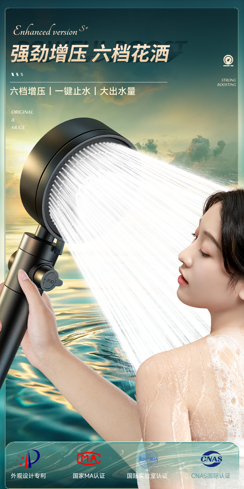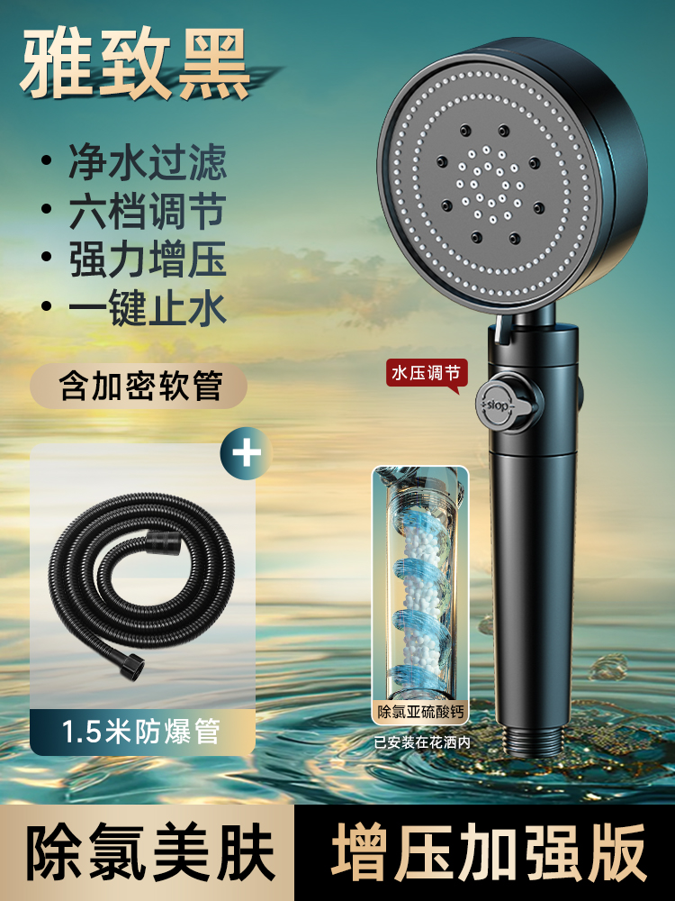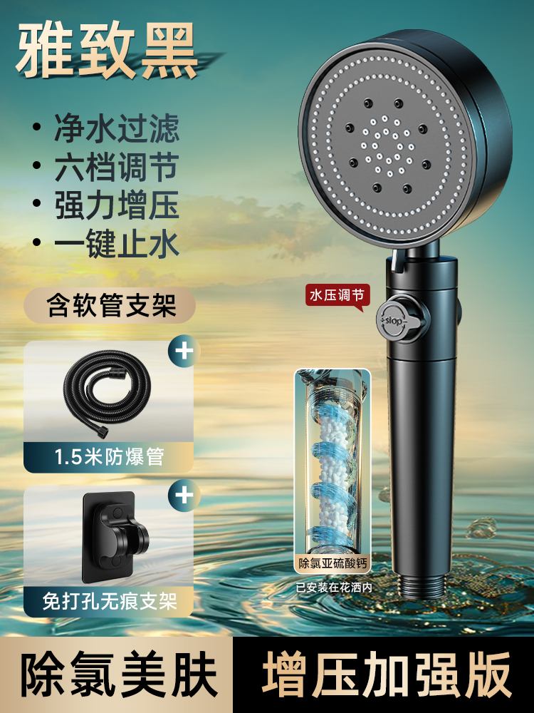 • 블랙 - 6단계 방수 [염소제거 및 피부미용] ● 슈퍼차지 강화 버전]