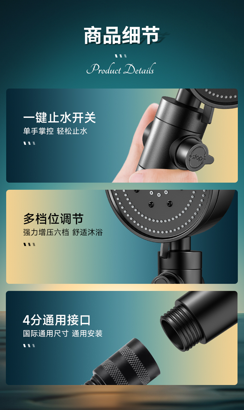 • 블랙 - 6단계 물 배출구 [수압 조절 ● 슈퍼차지 강화 버전]