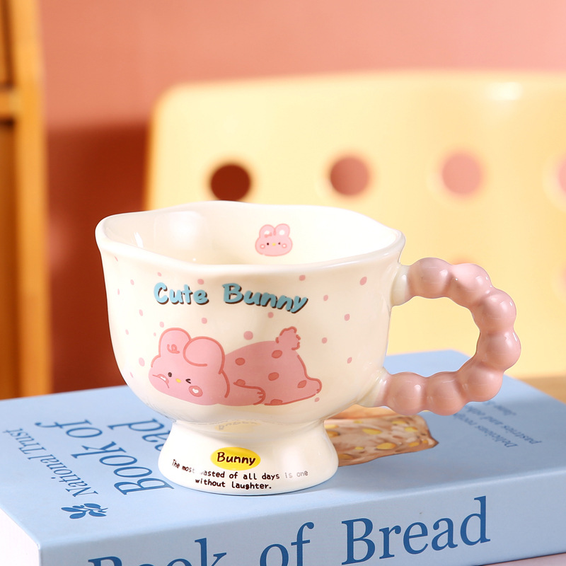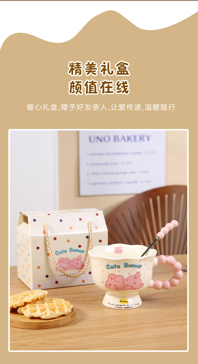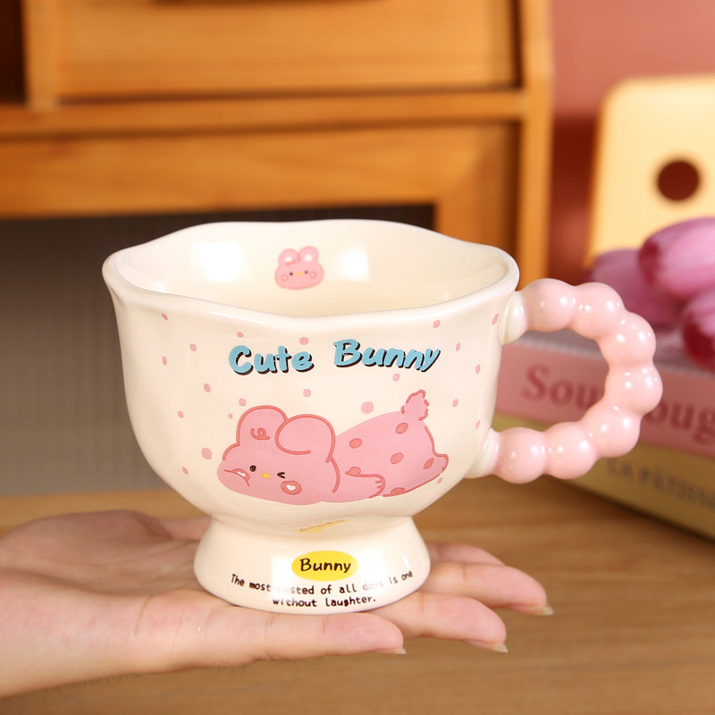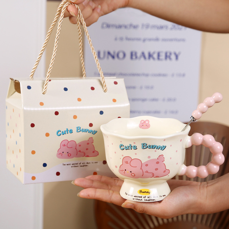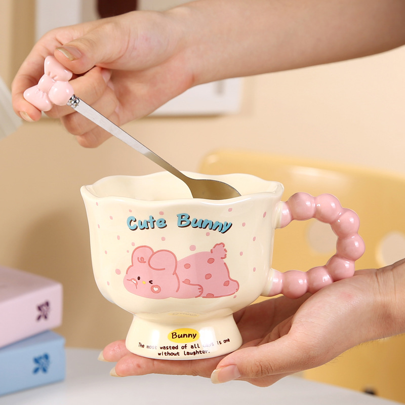 • 아빠 토끼 핑크 비즈 싱글 컵과 나비 스푼