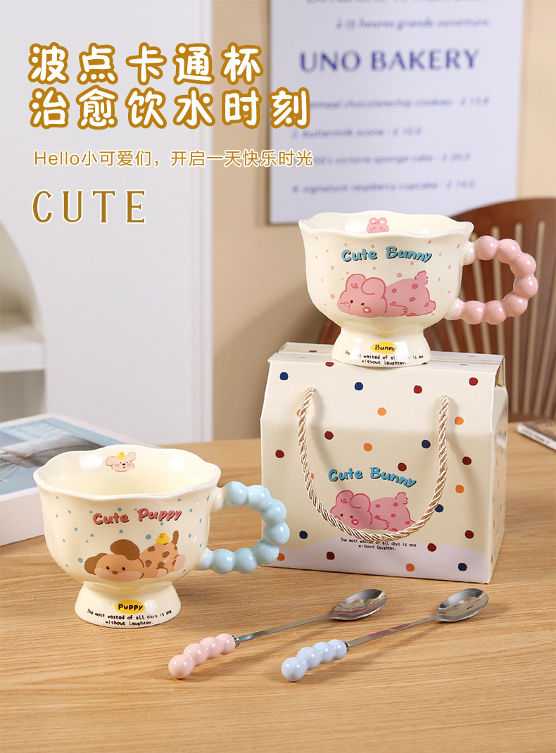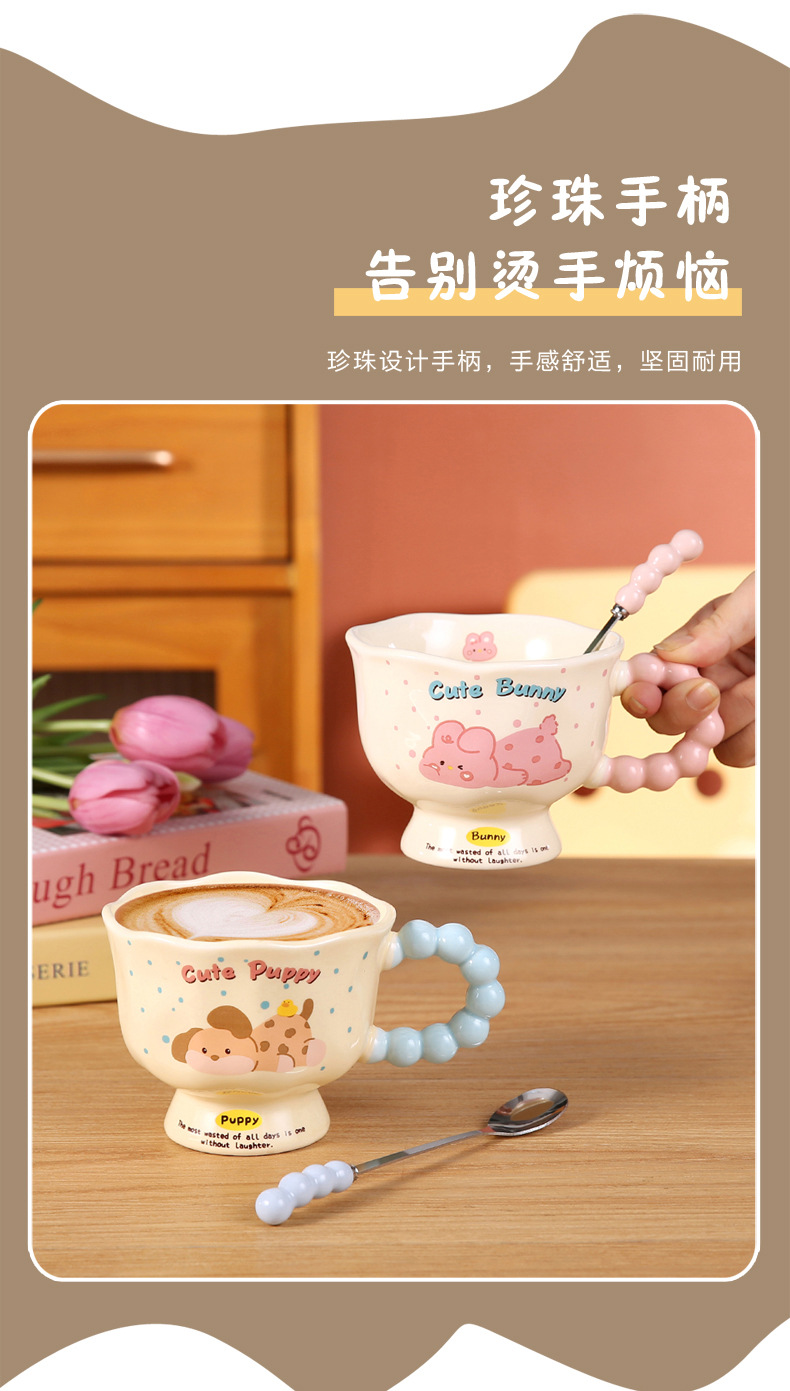 • 아빠 토끼 - 핑크 비즈 손잡이 싱글 컵과 비즈 손잡이 스푼
