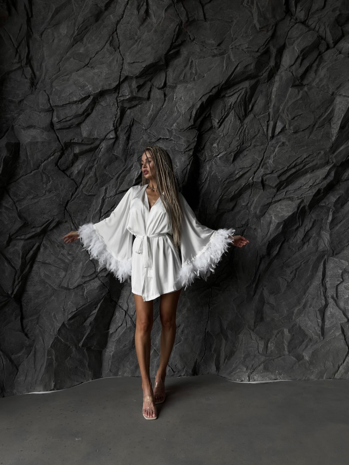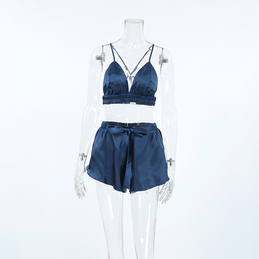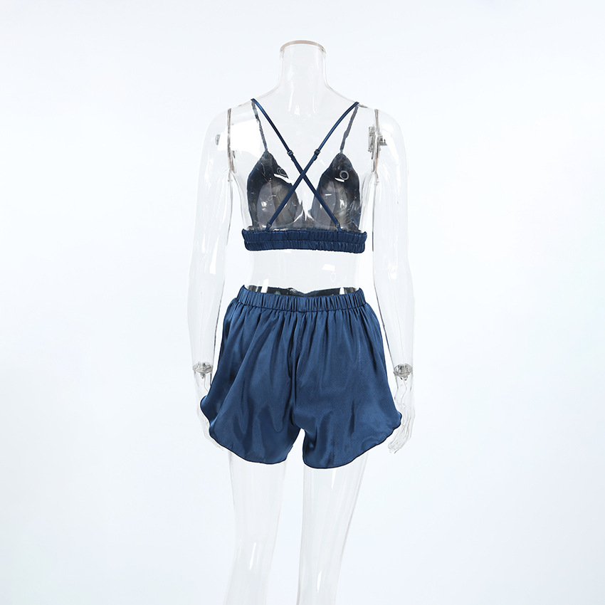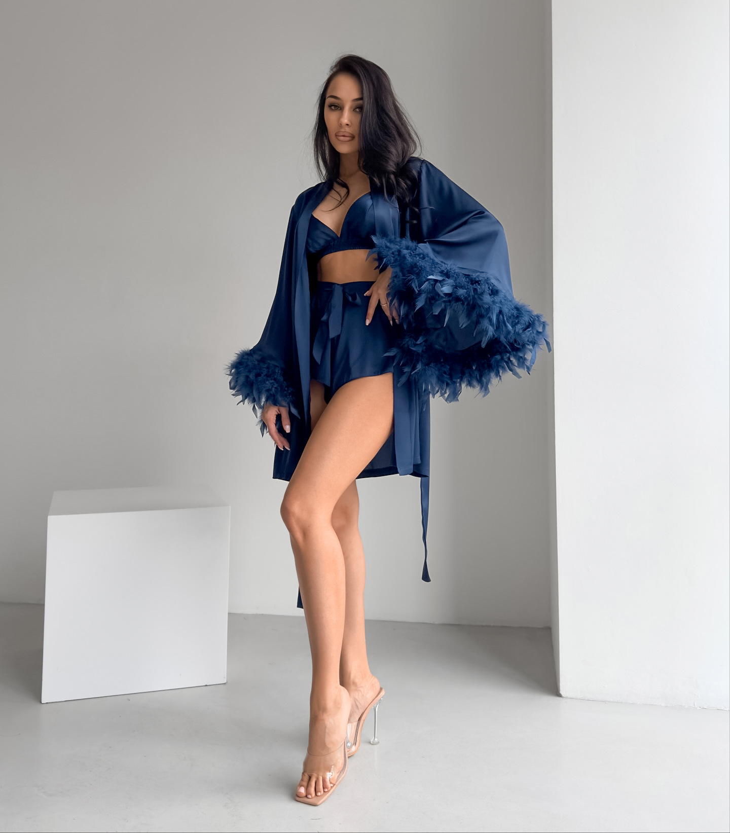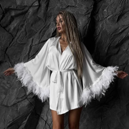 유럽과 미국의 국경 간 새로운 스타일 깃털 부드럽고 느슨한 모조 실크 잠옷 3 피스 세트 2025 가을 대외 무역 여성용 가정 의류스토어 가기