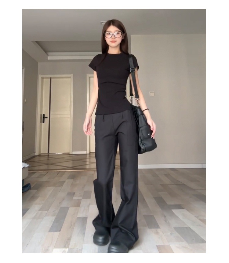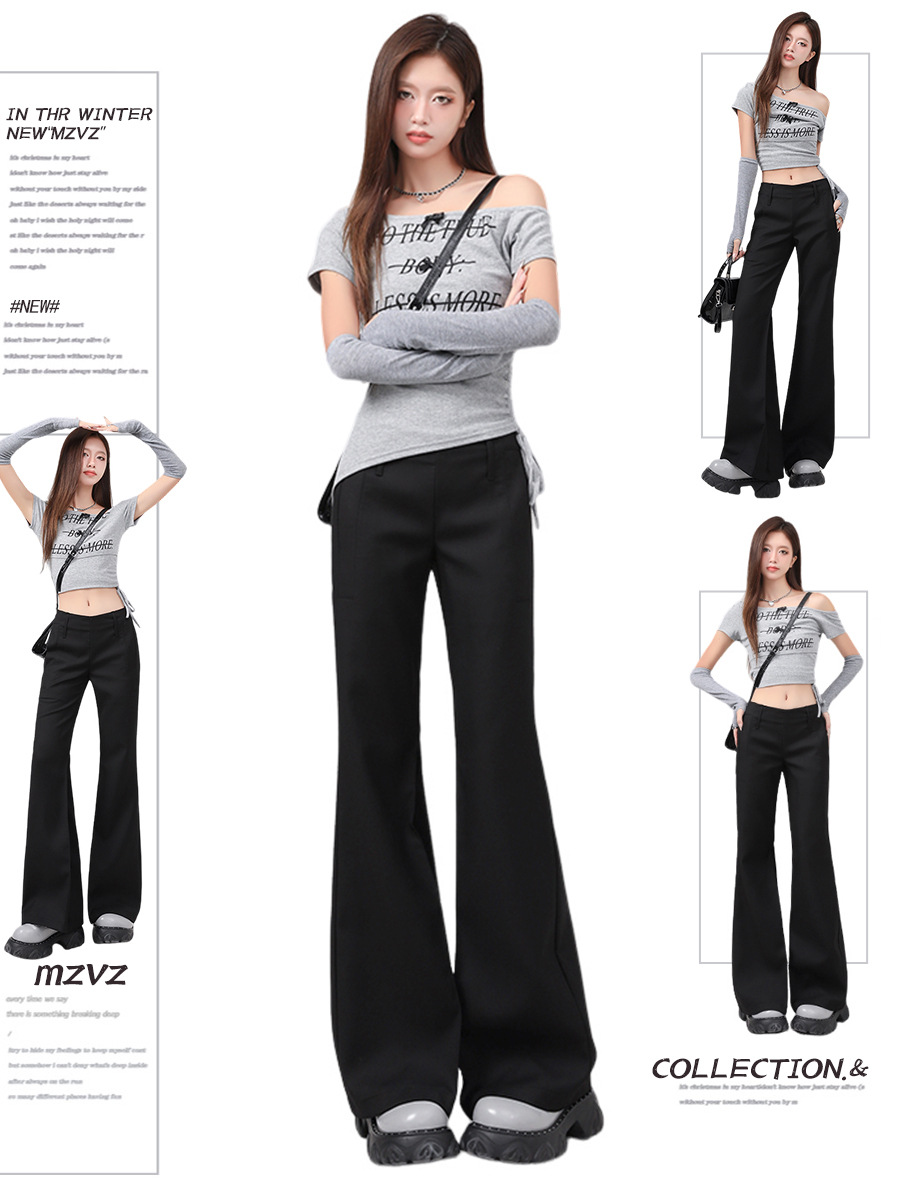 여성용 블랙 부츠컷 캐주얼 팬츠 여름 2025 신상 빅사이즈 여성을 위한 루즈핏 슬림핏 배형 체형용 정장 바지
