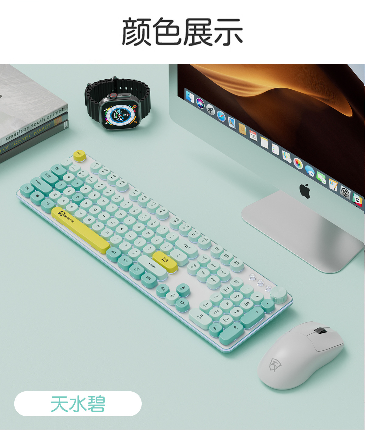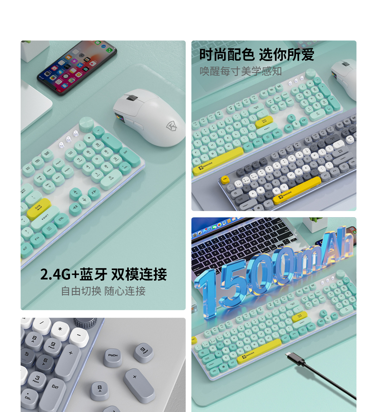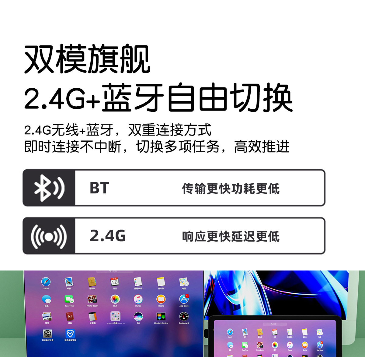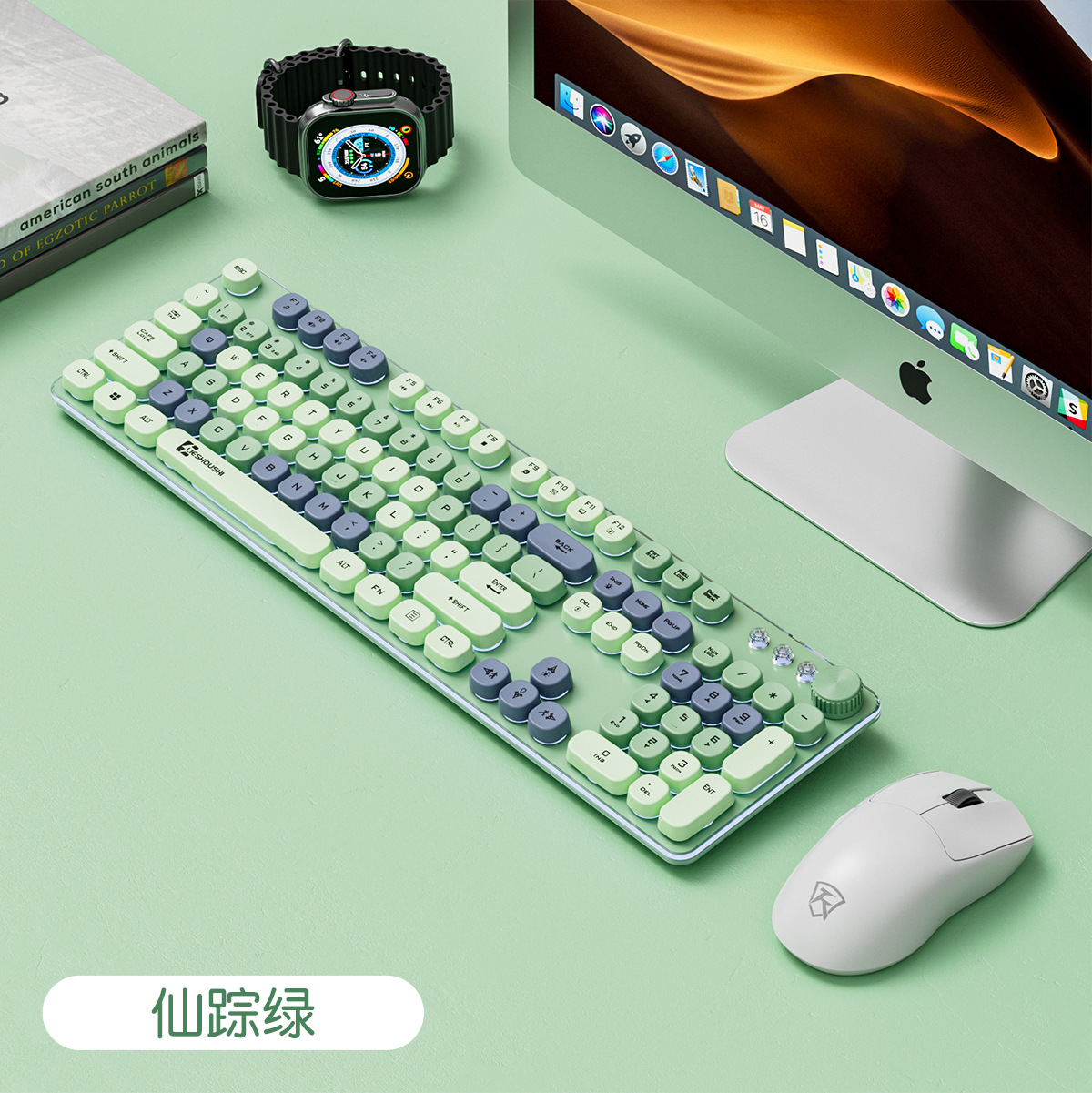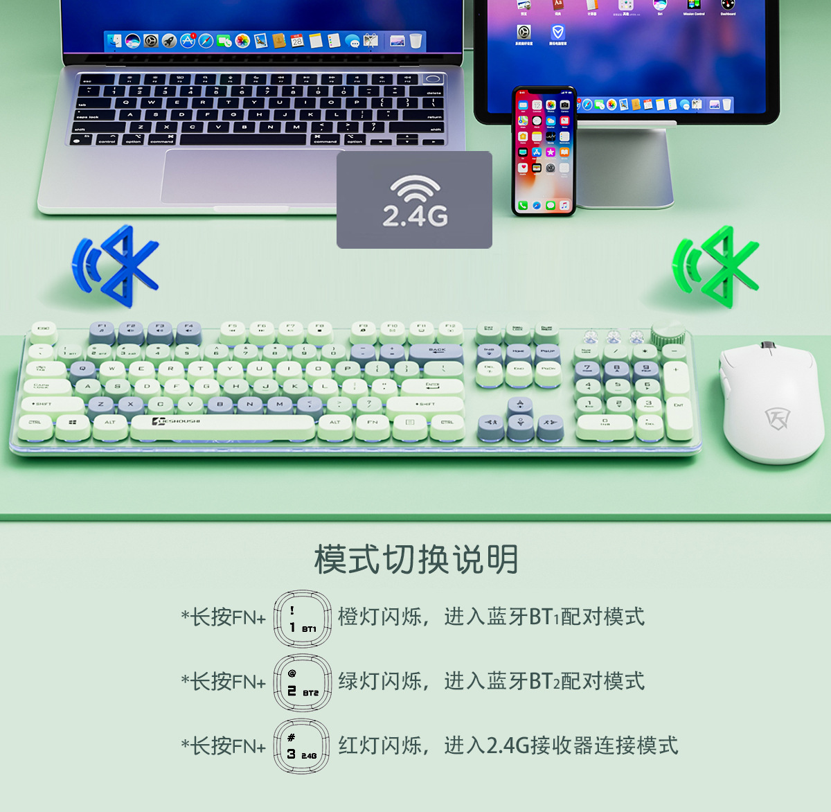 • Wizhi Green-2.4G+Bluetooth 듀얼 모드 키보드+무선 듀얼 모드 마우스