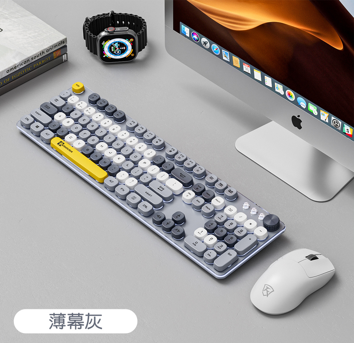 • 얇은 커튼 그레이-2.4G+블루투스 듀얼 모드 키보드+무선 듀얼 모드 마우스