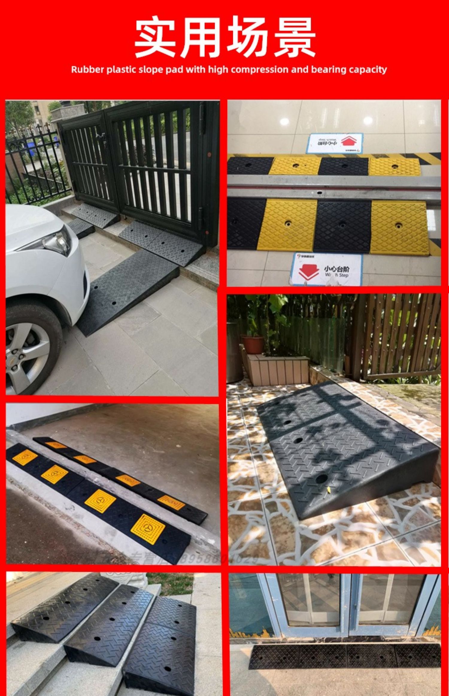 도로 연석 경사로 경사로 패드 경사로 길이 1.0m 너비 50cm 전체 단계 패드 삼각형 목재 고무스토어 가기
