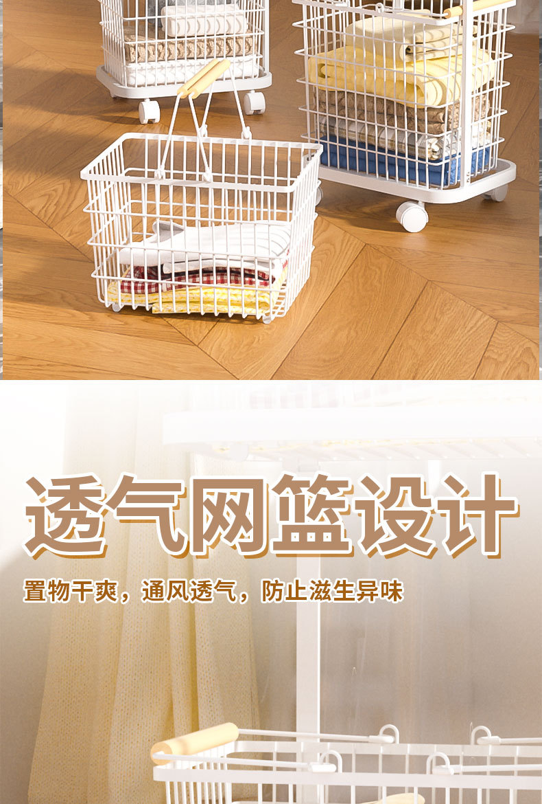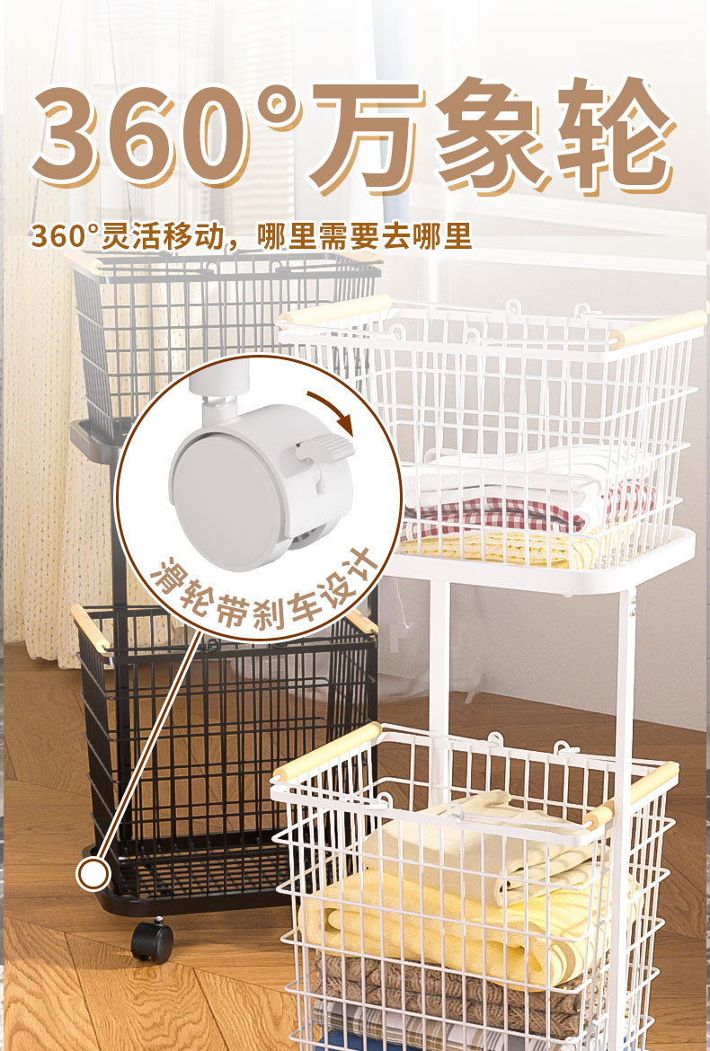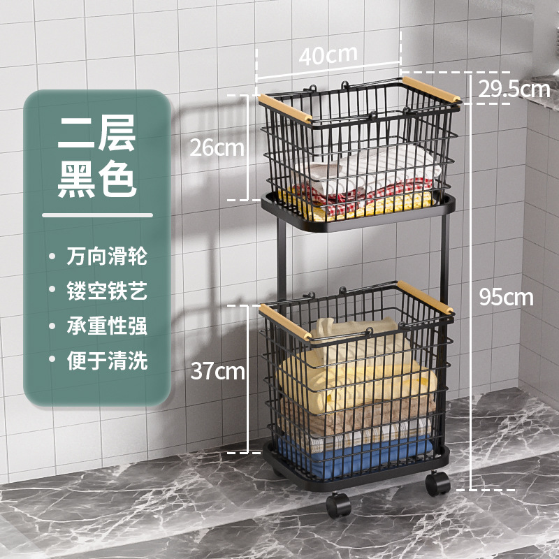 가정용 분리형 세탁물 바구니, 다층 수납 바구니, 범용 휠, 고급 철제 제품을 위한 더러운 옷 바구니의 국경 간 직접 공급스토어 가기