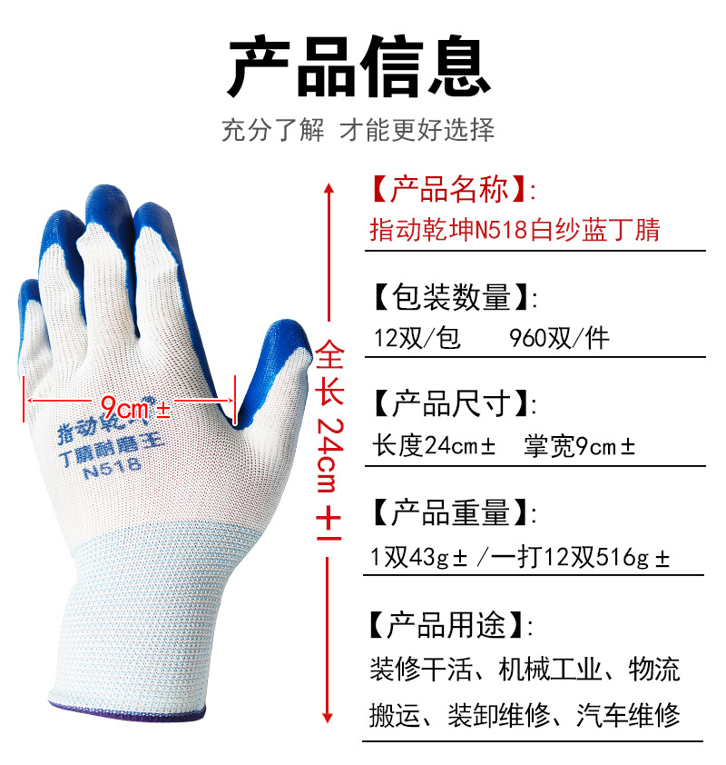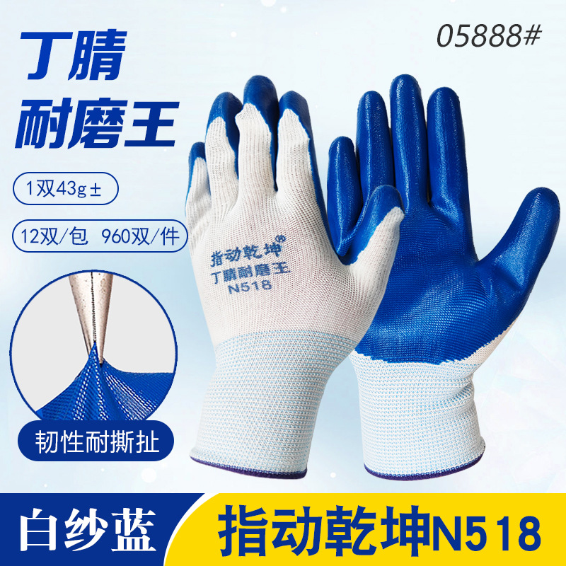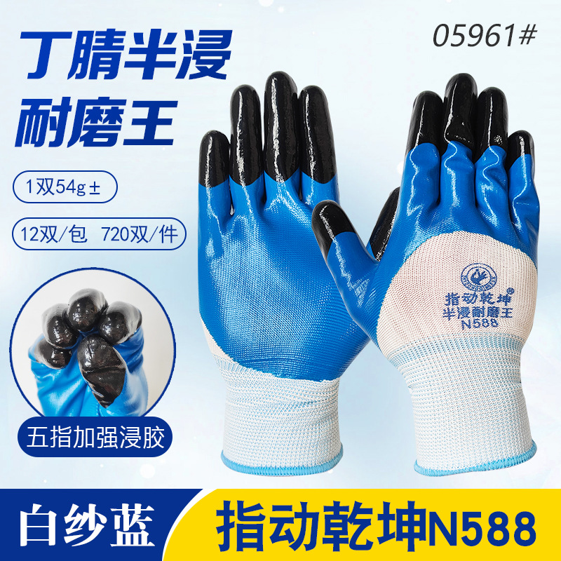 • Zhimouqiankun N588 흰색 거즈 파란색 고무 니트릴 강화 손가락 장갑 05961 #