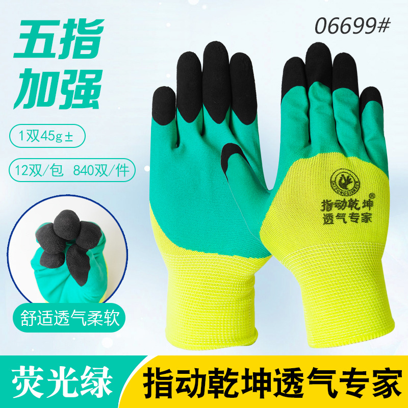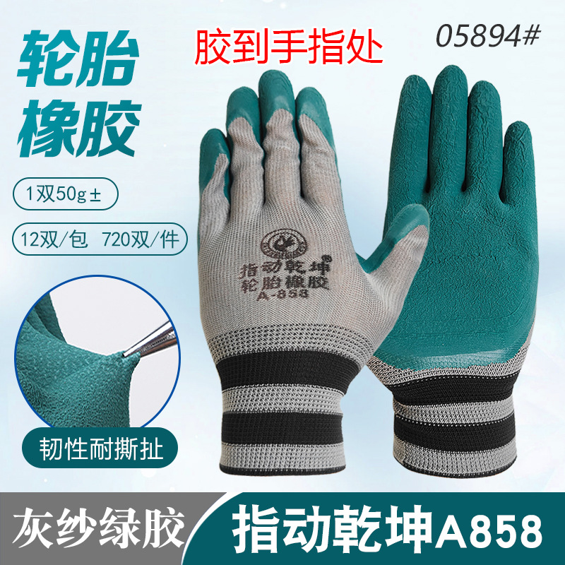 • Zhimouqiankun 타이어 고무 A858 회색 원사 녹색 고무 폼 플랫 교수형 장갑 05894 #