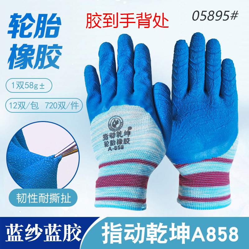 • Zhimou Qiankun 타이어 고무 A858 파란색 원사 파란색 고무 폼 대형 세미 장갑 05895 #