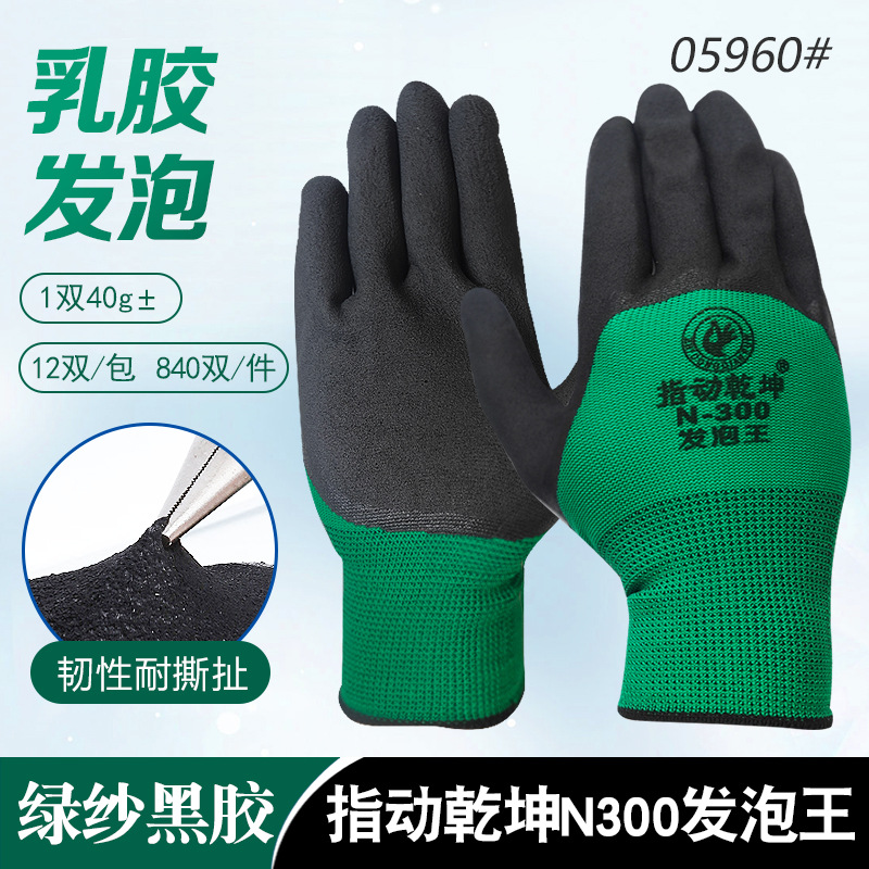 • Zhimingqiankun N-300 녹색 거즈 검정 접착제 폼 킹 대형 반 장갑 05960 #