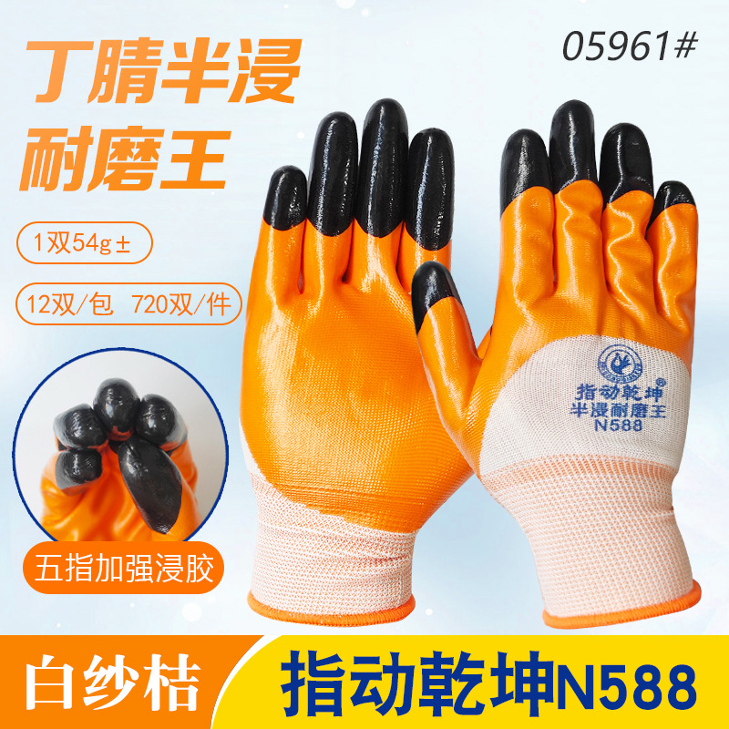 • Zhimouqiankun N588 흰색 거즈 오렌지색 고무 니트릴 강화 손가락 장갑 05961 #