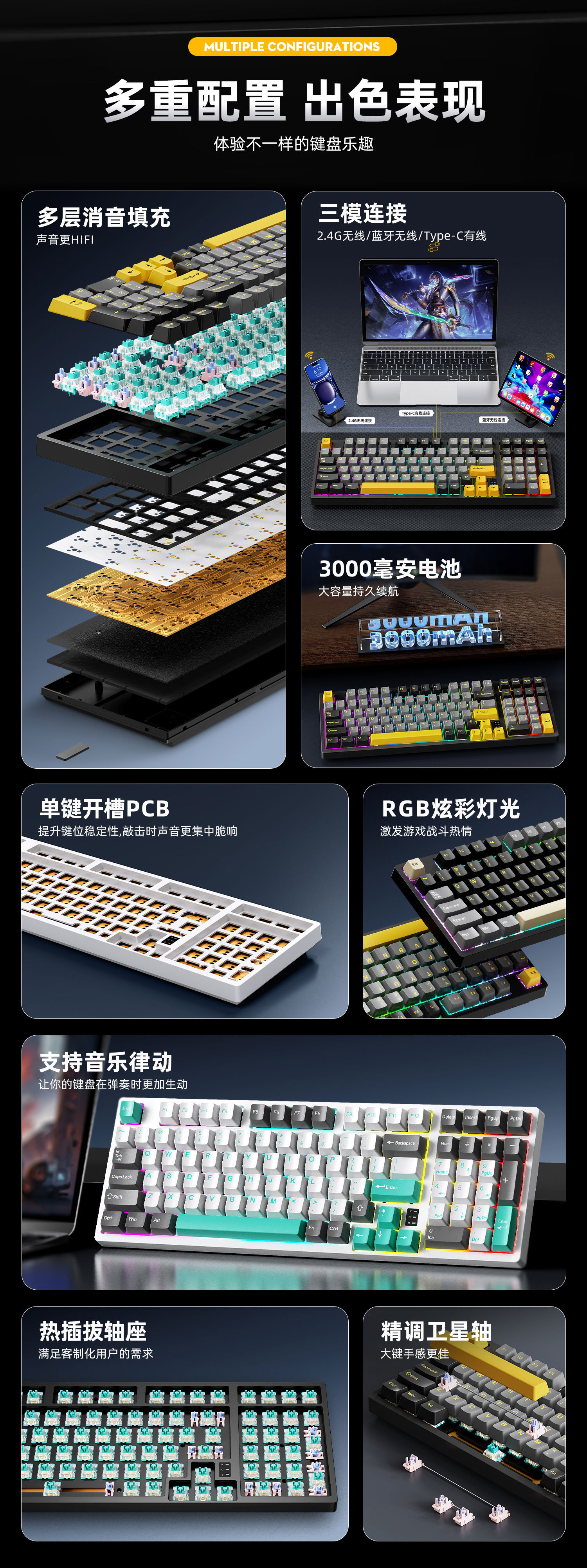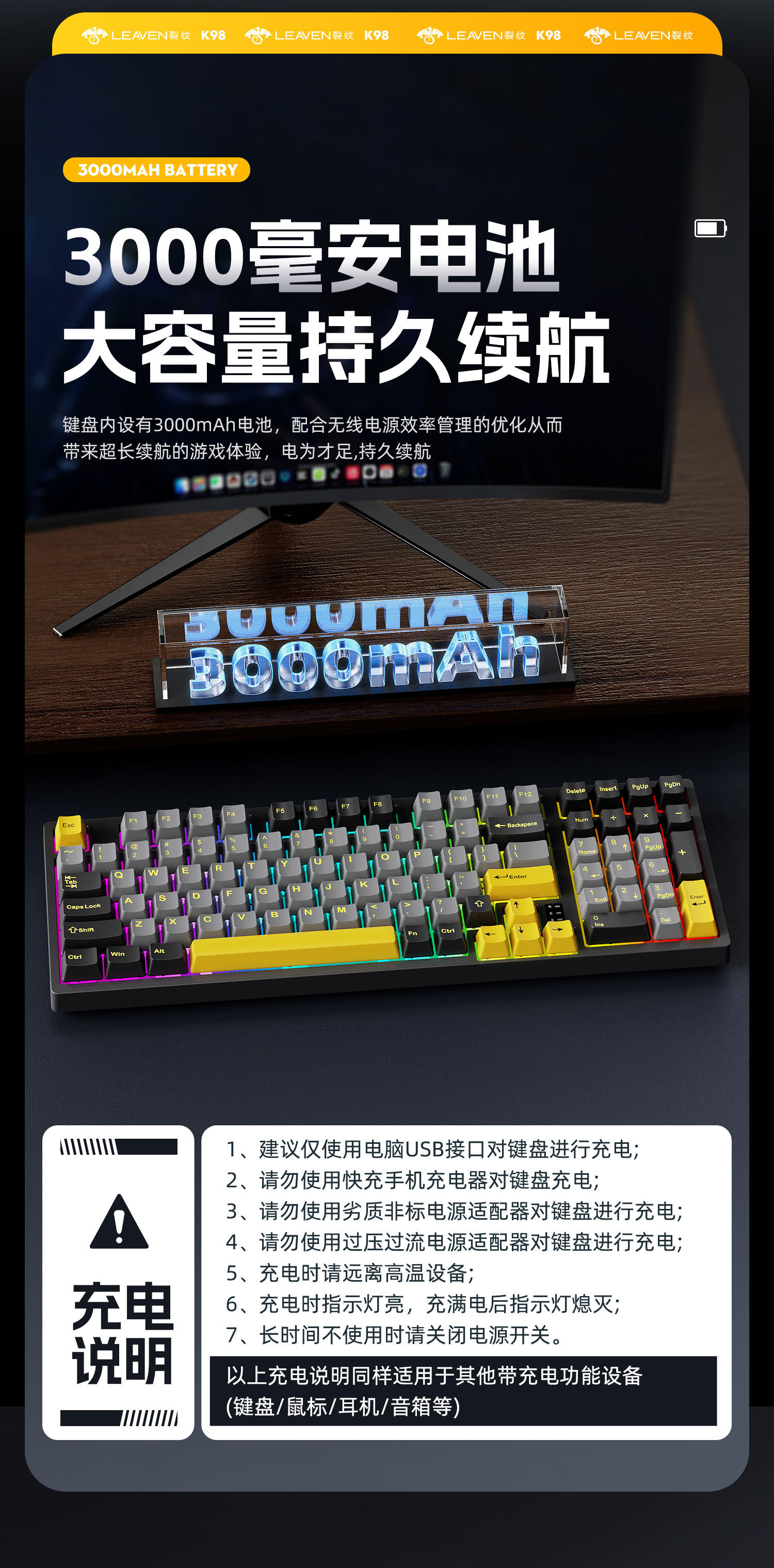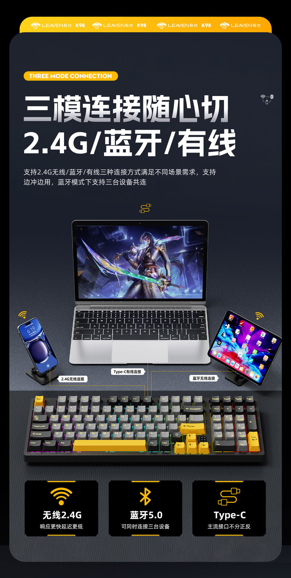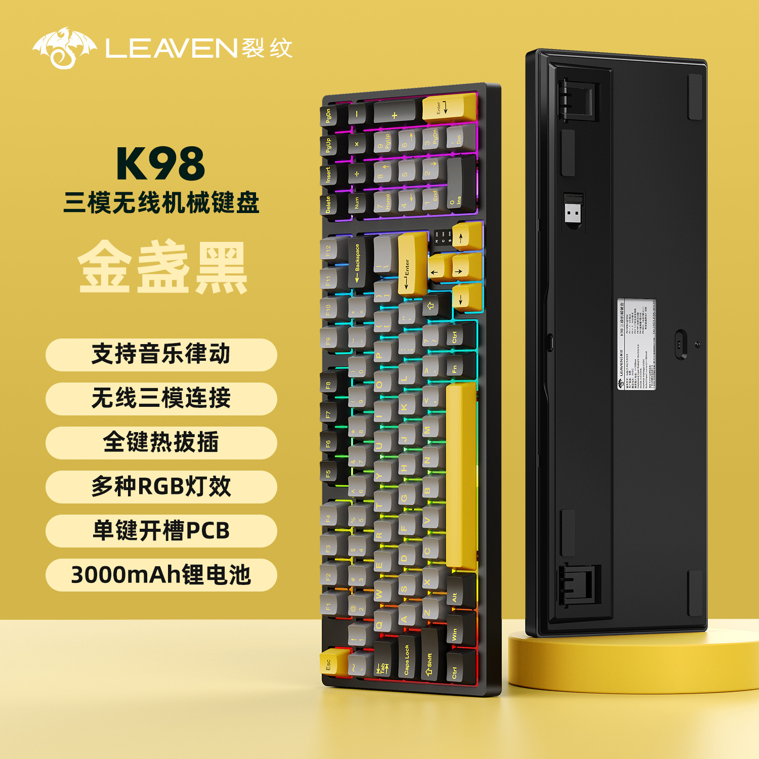 Crack K98 맞춤형 핫 스왑 가능 기계식 키보드 e-스포츠 오피스 게임 RGB 무선 Bluetooth 3 모드 키보드스토어 가기
