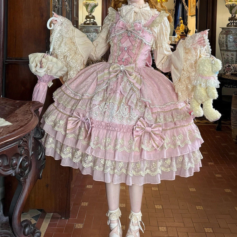 한구량~새로운 디자인 드레스 스타일 서스펜더 드레스 여름 귀여운 로리타 핑크 JSK 핑크 테일 윙스토어 가기