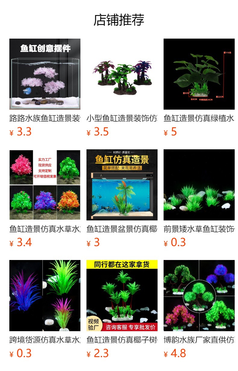 국경 간 수조 조경 장식 플라스틱 시뮬레이션 수생 식물 수족관 세트 시뮬레이션 식물 환영 소나무 플라스틱 수생 식물스토어 가기