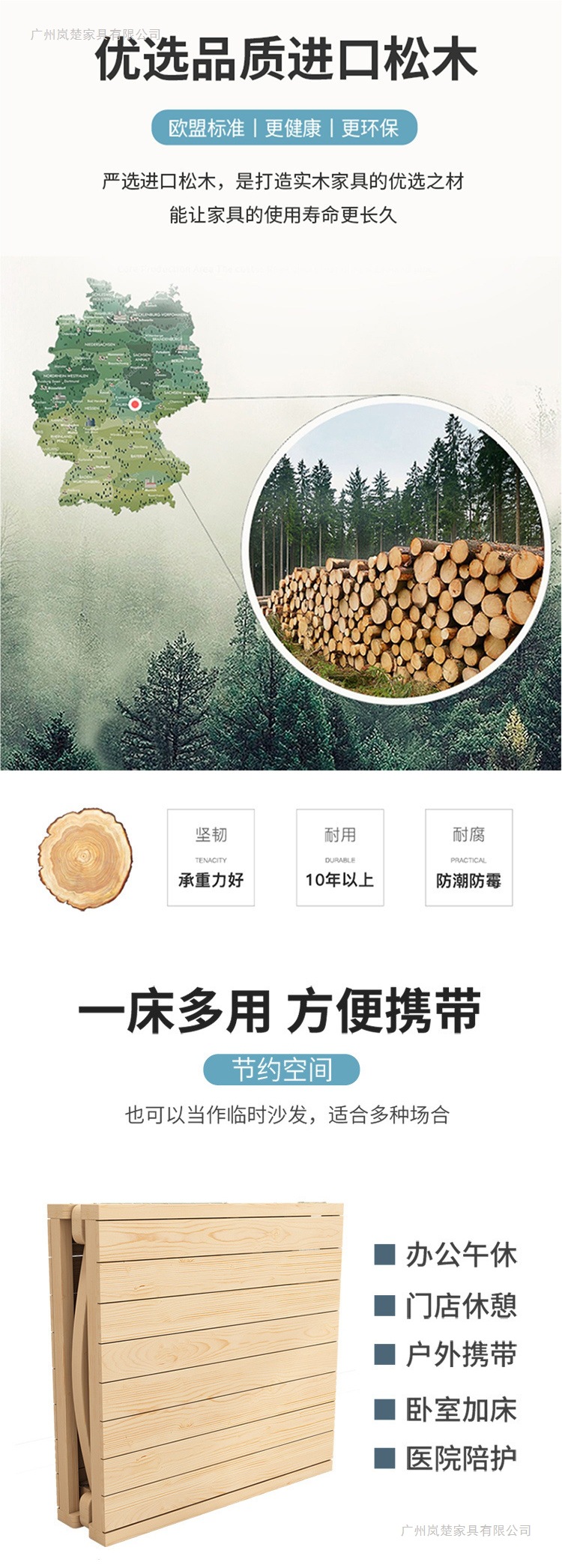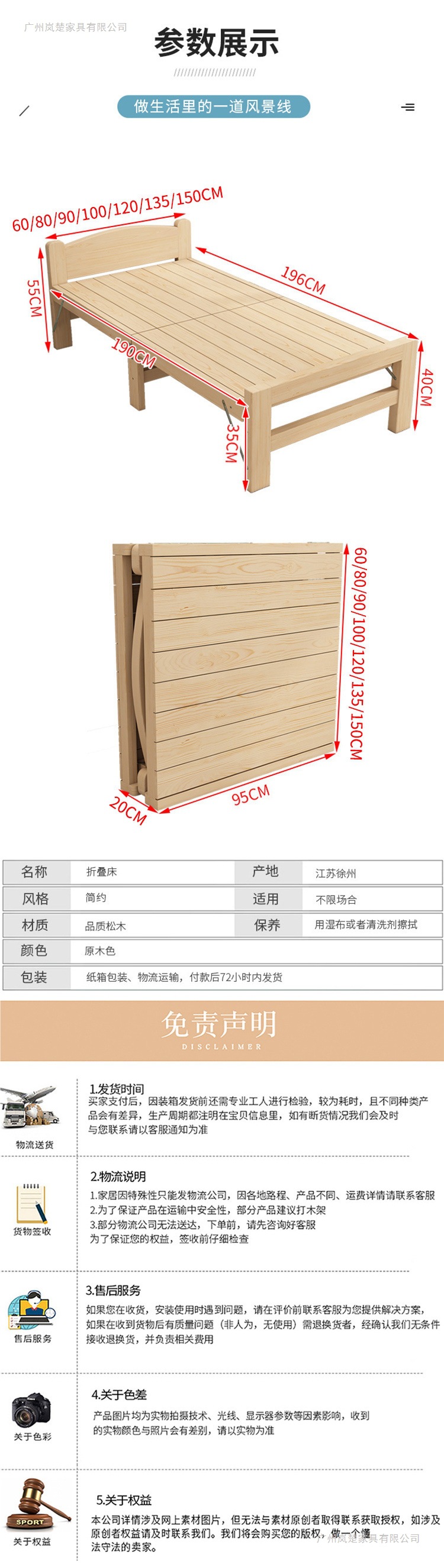 가정용 싱글용 원목 접이식 침대, 임대용 침대, 경제적인 설치가 필요 없는 두꺼운 성인용 낮잠 침대
