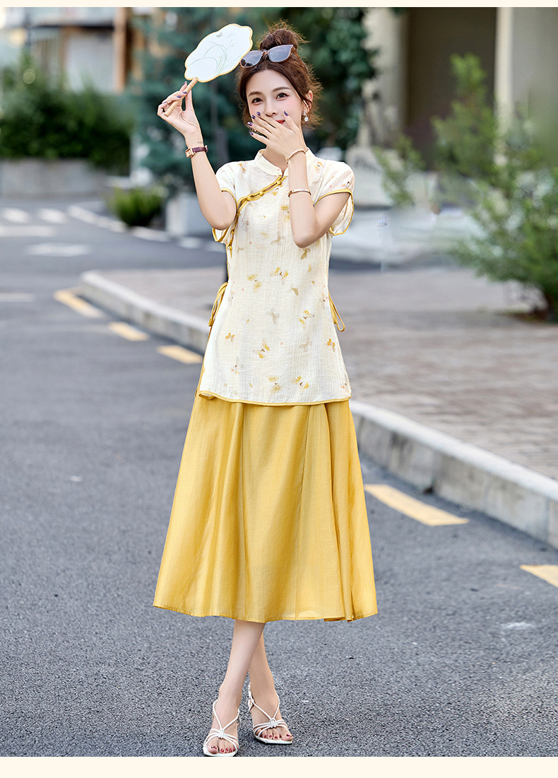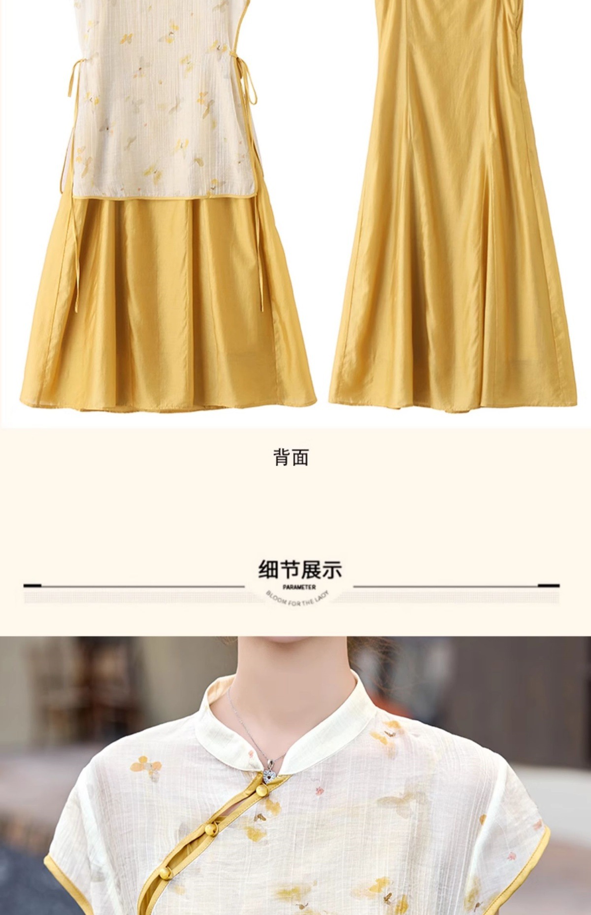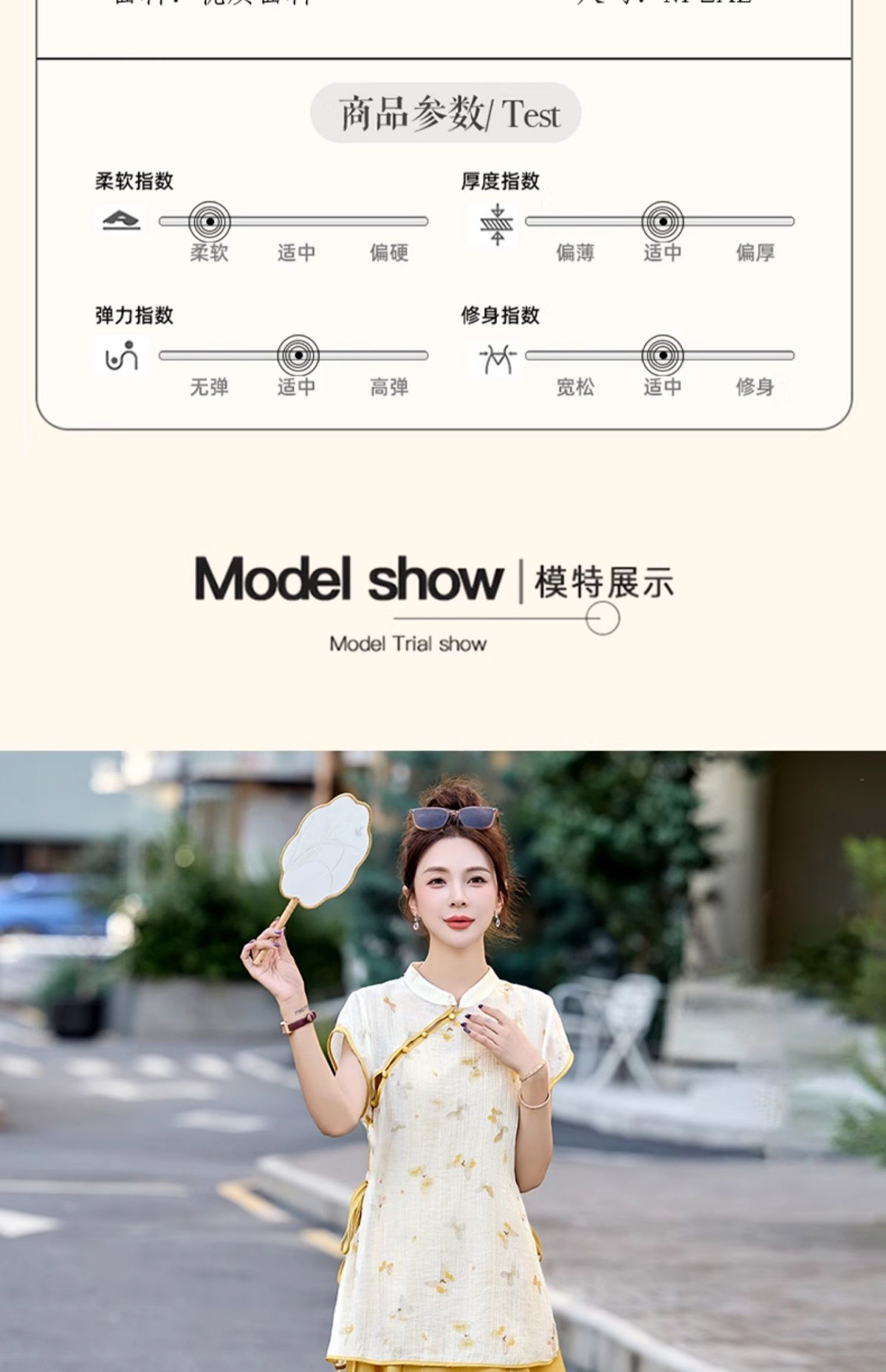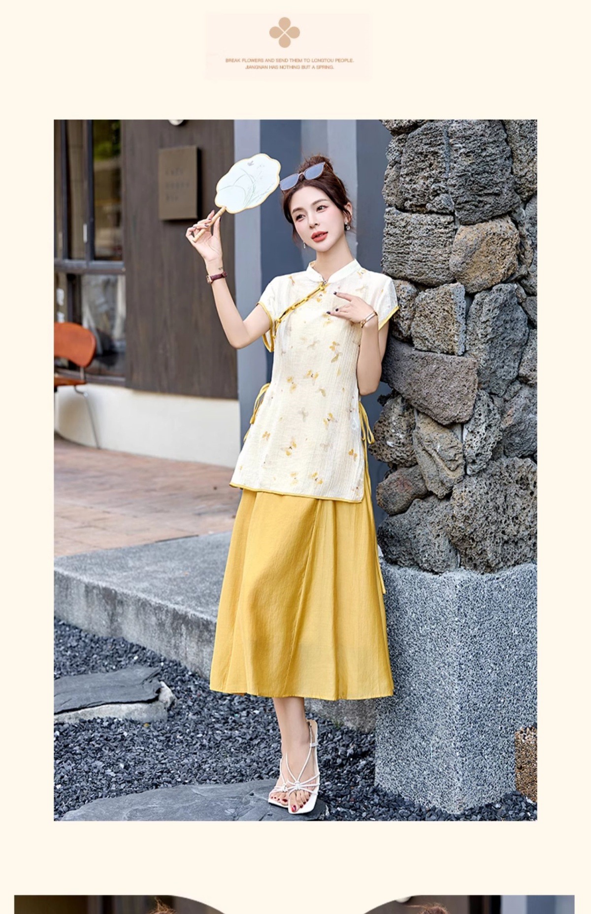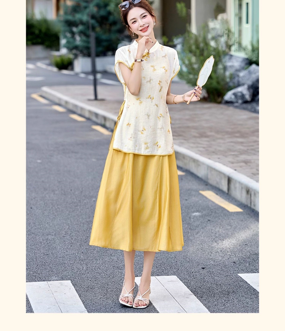 여성을위한 새로운 중국 스타일 중화民国 스타일 인쇄 개선 된 치파오 정장 2025 여름 새로운 기질 스커트 투피스 트렌디 세트