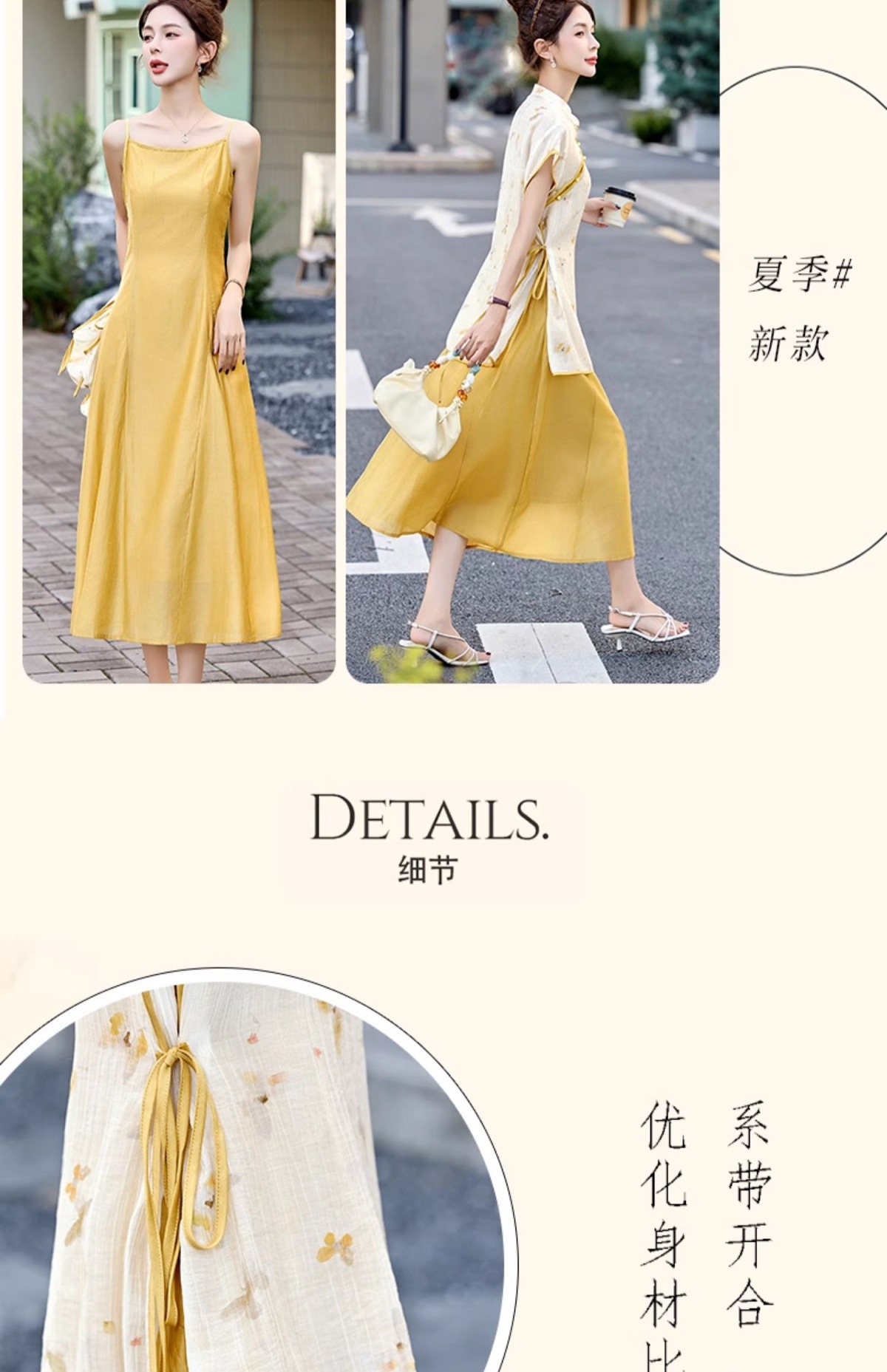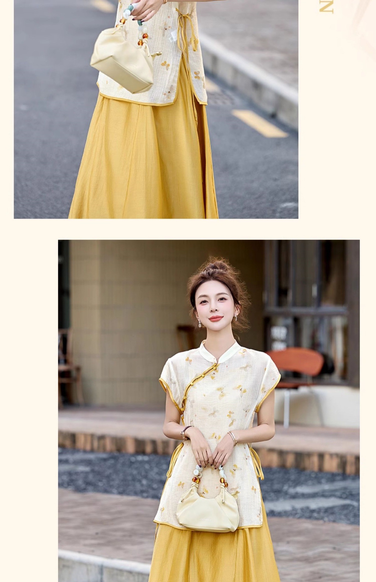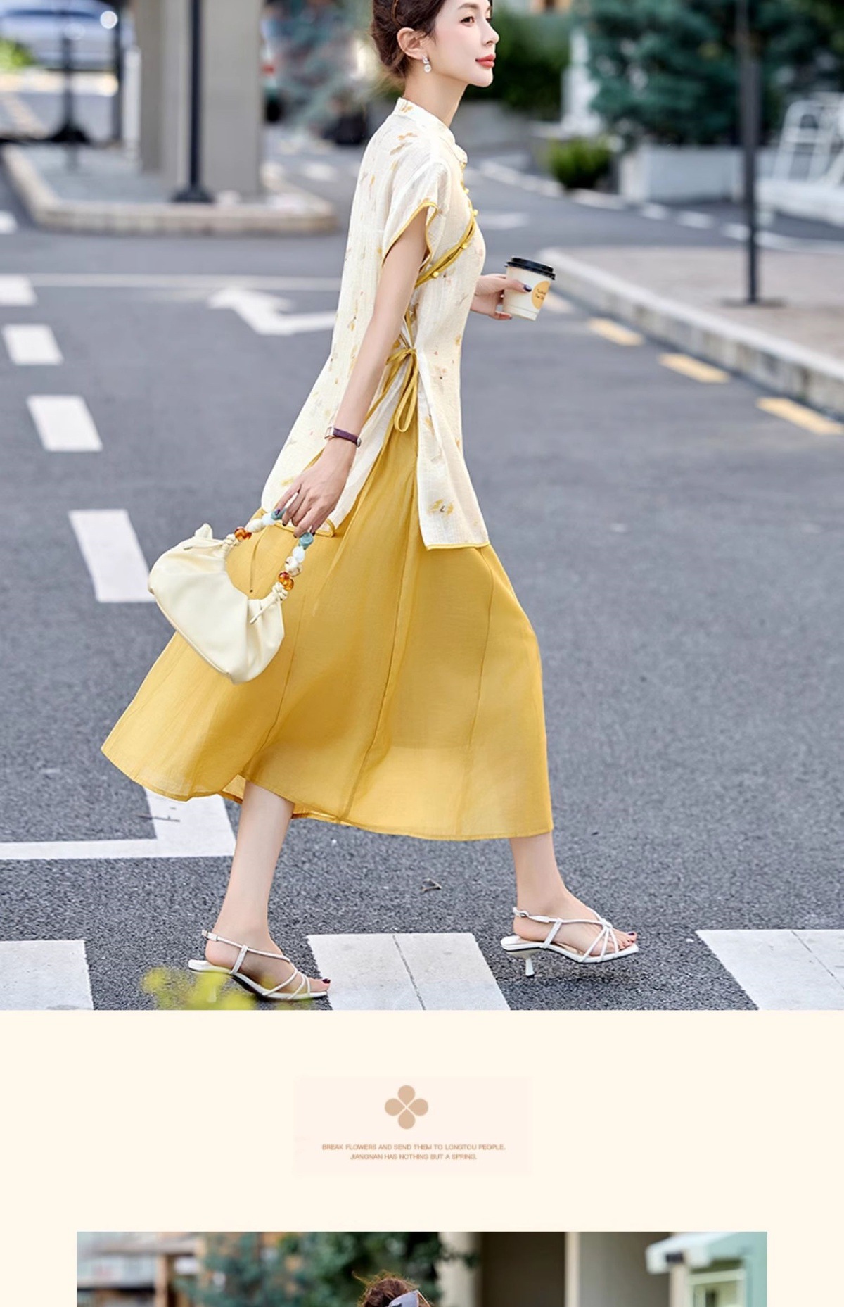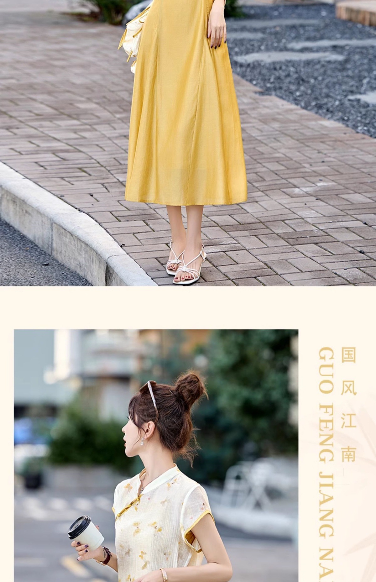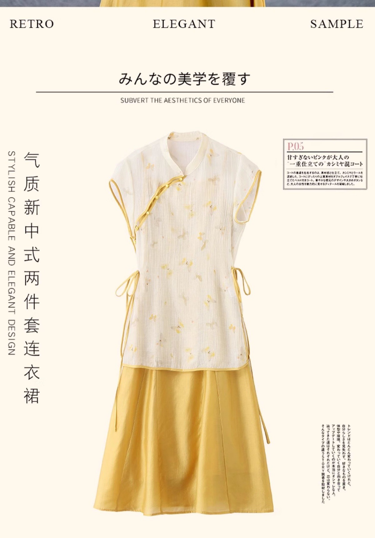 여성을위한 새로운 중국 스타일 중화民国 스타일 인쇄 개선 된 치파오 정장 2025 여름 새로운 기질 스커트 투피스 트렌디 세트