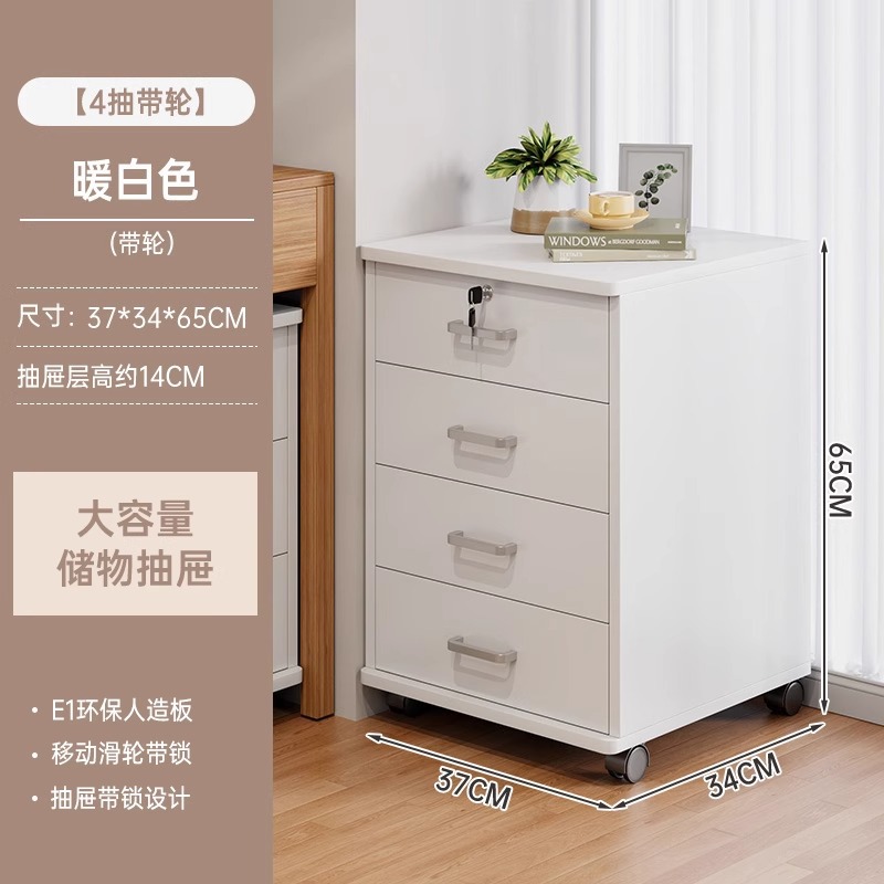 • [자물쇠가 달린 서랍 4개] 웜화이트 37*34*65cm