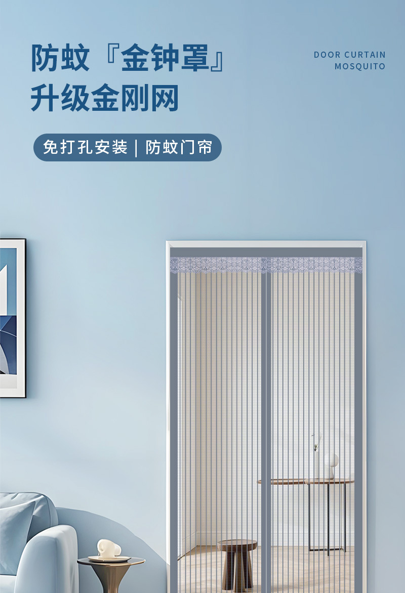 여름 벨크로 거즈 도어 가정용 모기 방지 도어 커튼 전체 자기 스트립 모기장 방충 자흡 자석 다이아몬드 메쉬 펀치 없음스토어 가기