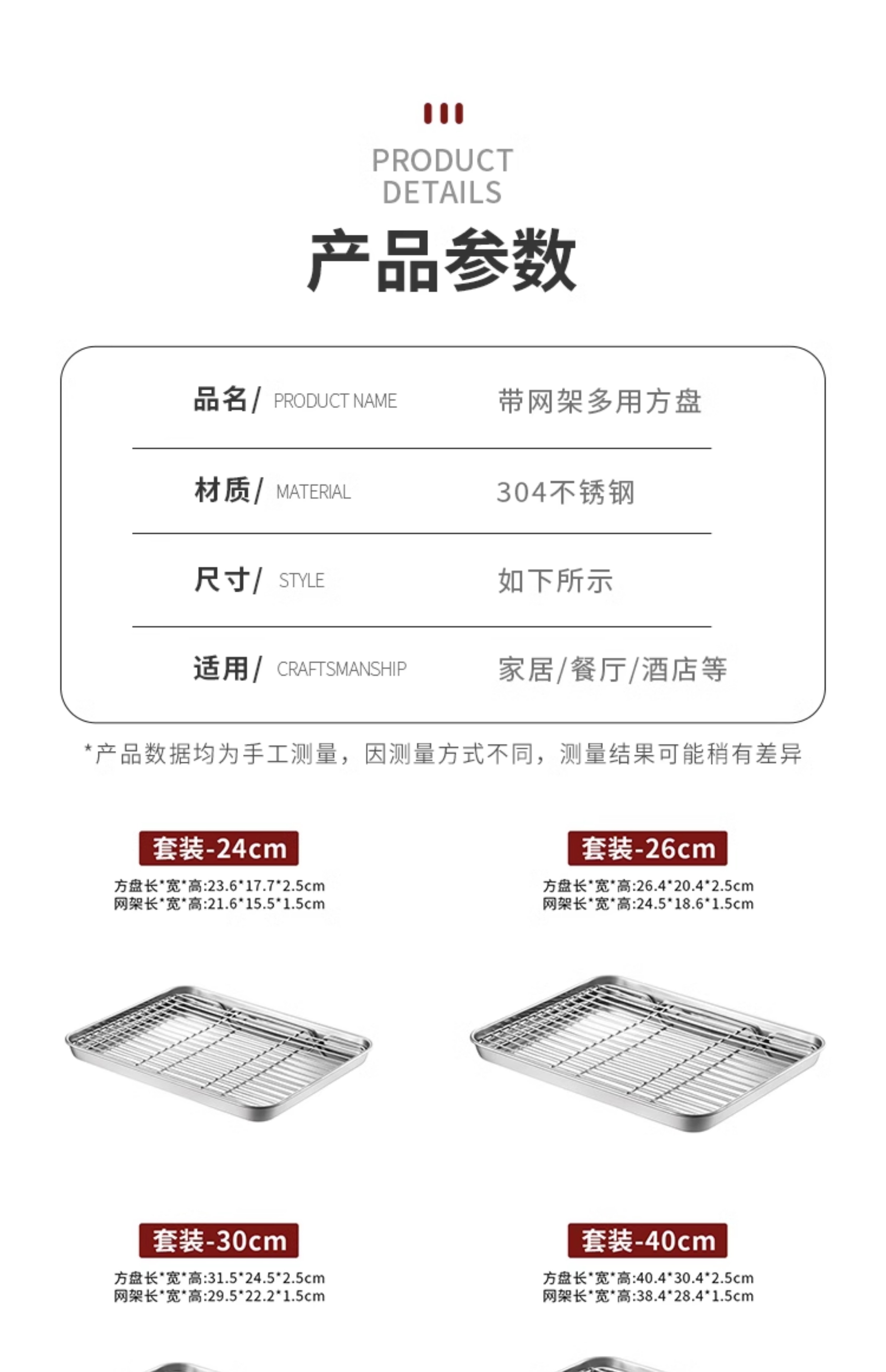 • 304 일본식 사각접시 + 와이어망 [26.4*20.4*2.5]