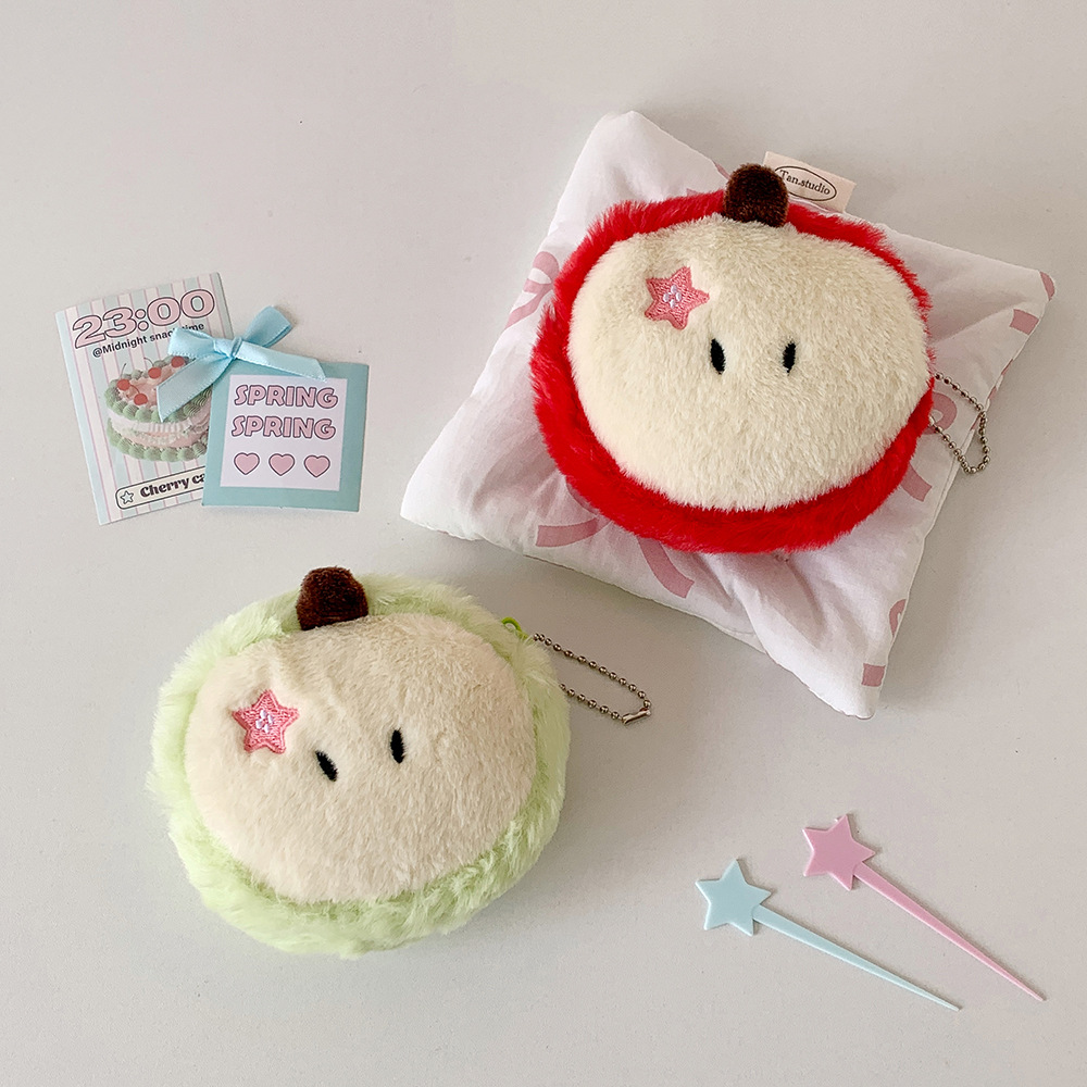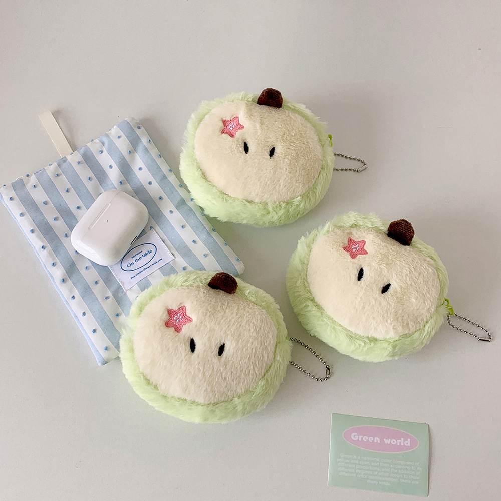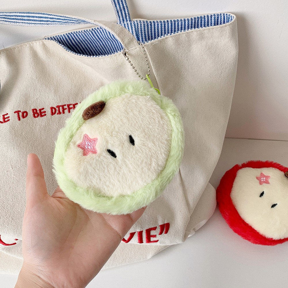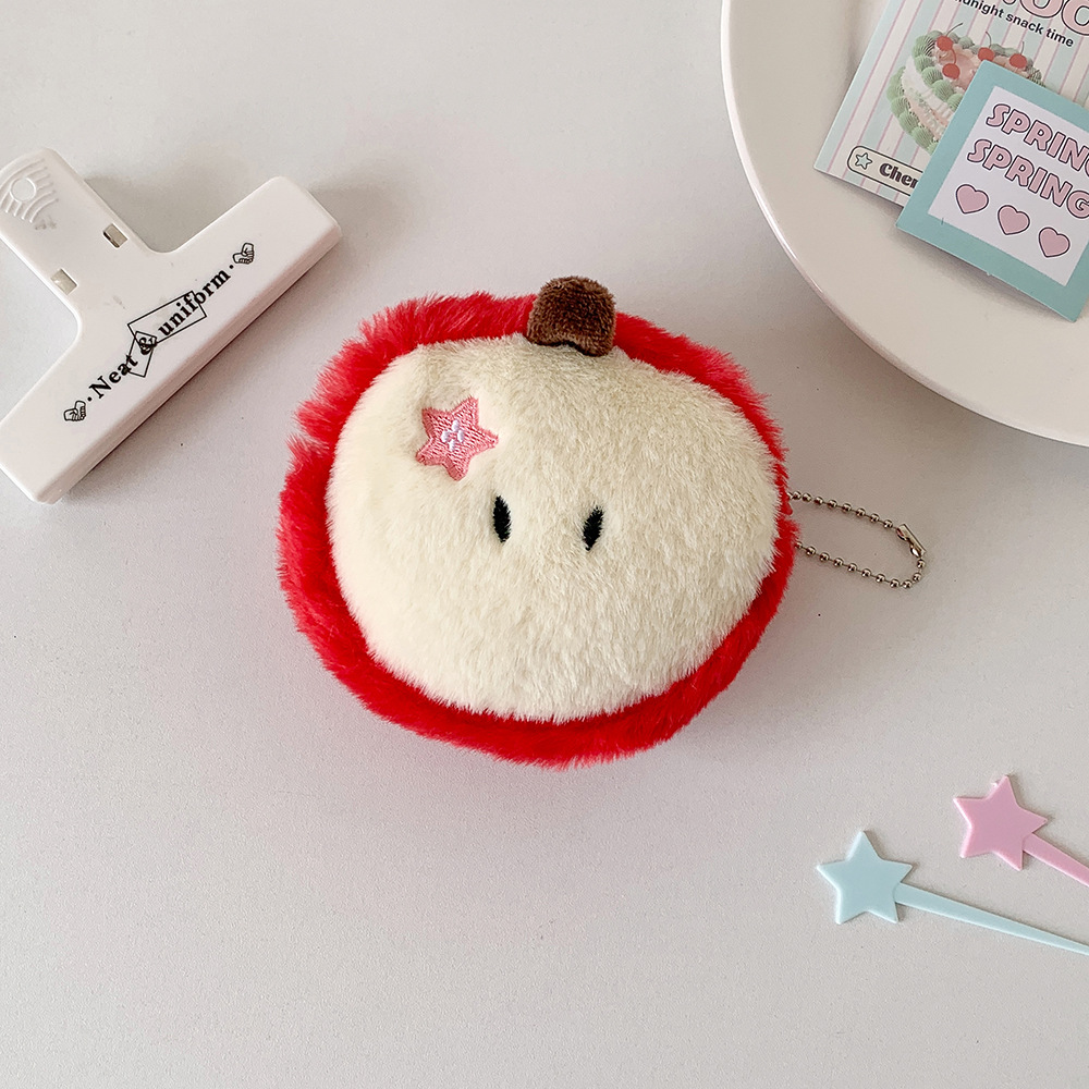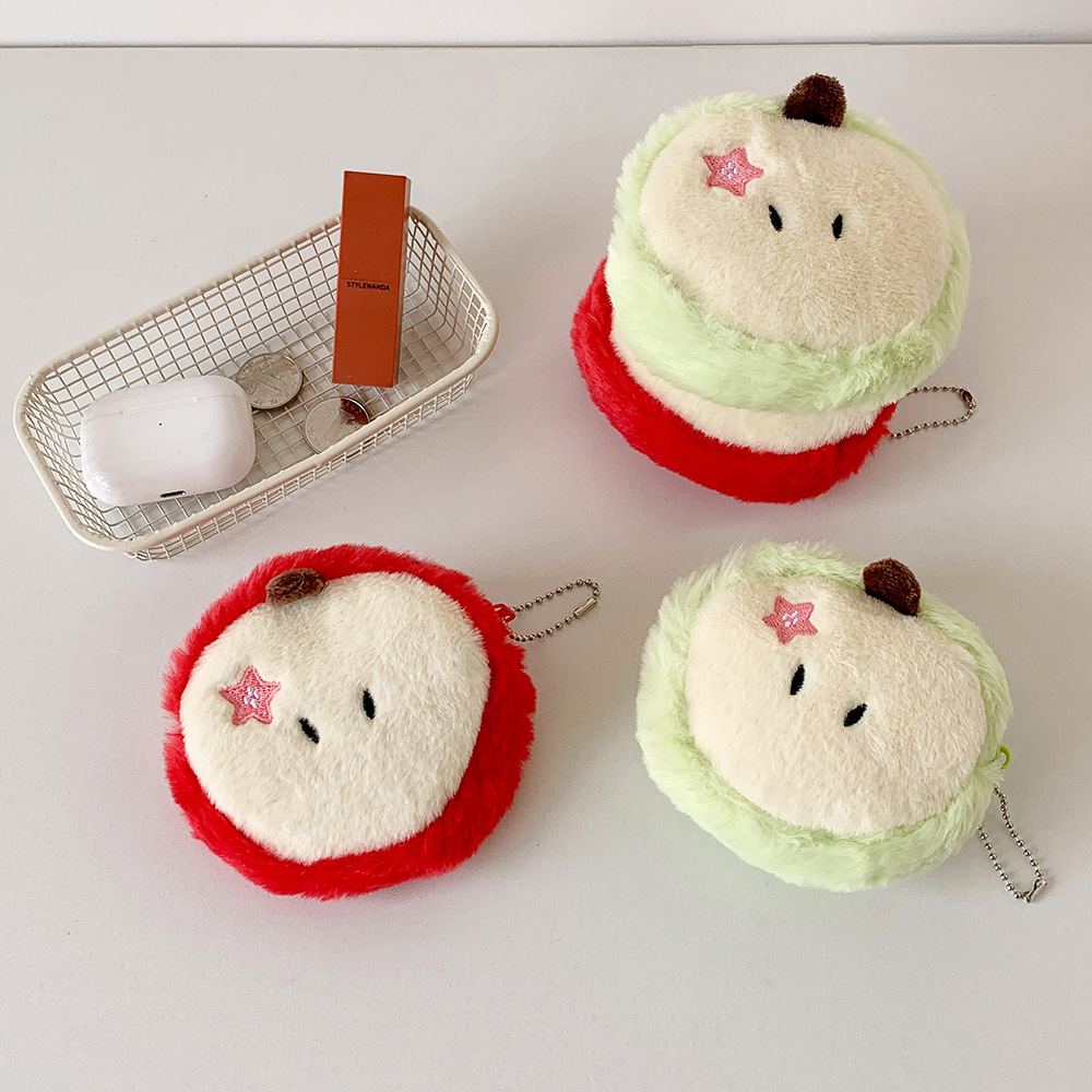 귀여운 사과 동전 지갑 크리 에이 티브 만화 플러시 펜던트 미니 가방 학생 헤드폰 가방 데이터 케이블 보관 가방