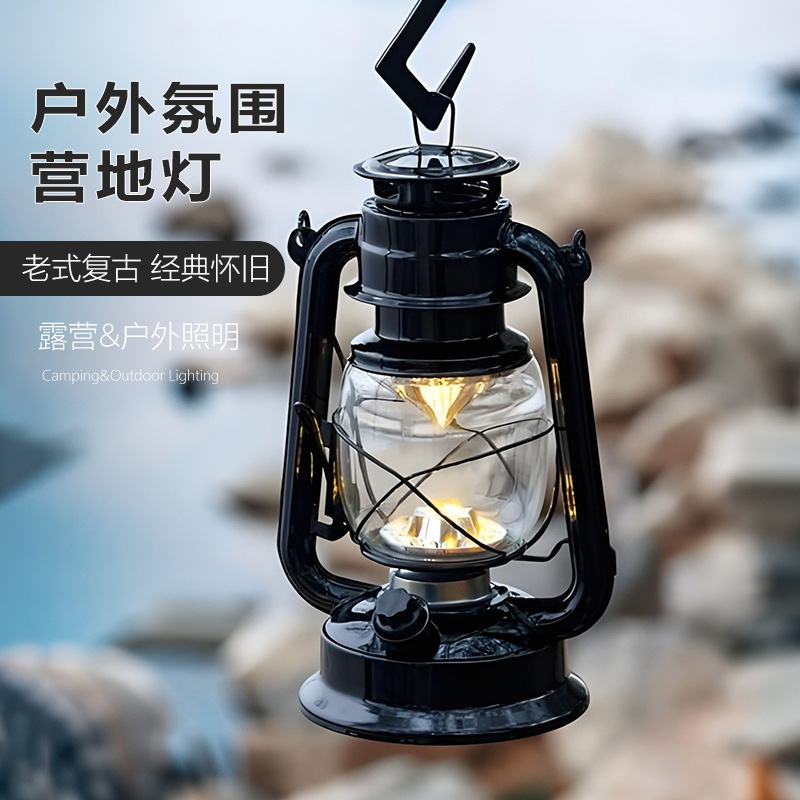 맞춤형 복고풍 야외 캠핑 램프, 말 랜턴, 휴대용 텐트, LED 분위기 조명, 구식 등유 침실 바 가공스토어 가기