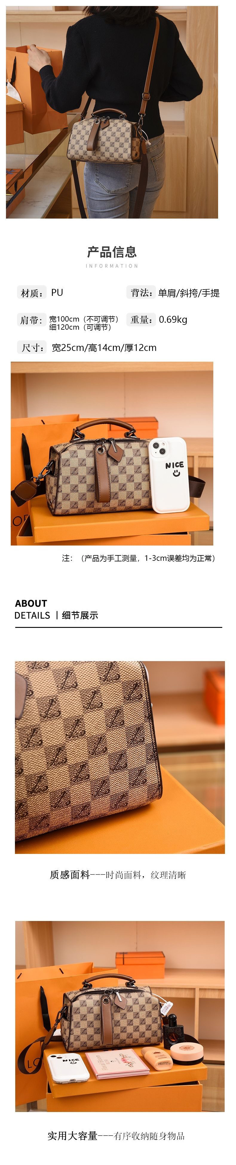 2024 새로운 가방 여성 캐주얼 패션 트렌드 싱글 숄더 크로스 바디 휴대용 다목적 라이트 럭셔리 보스턴 베개 가방스토어 가기