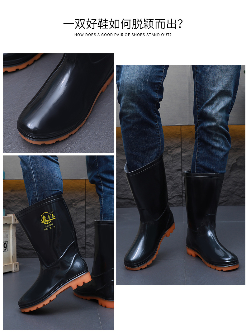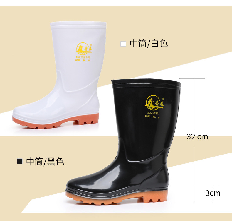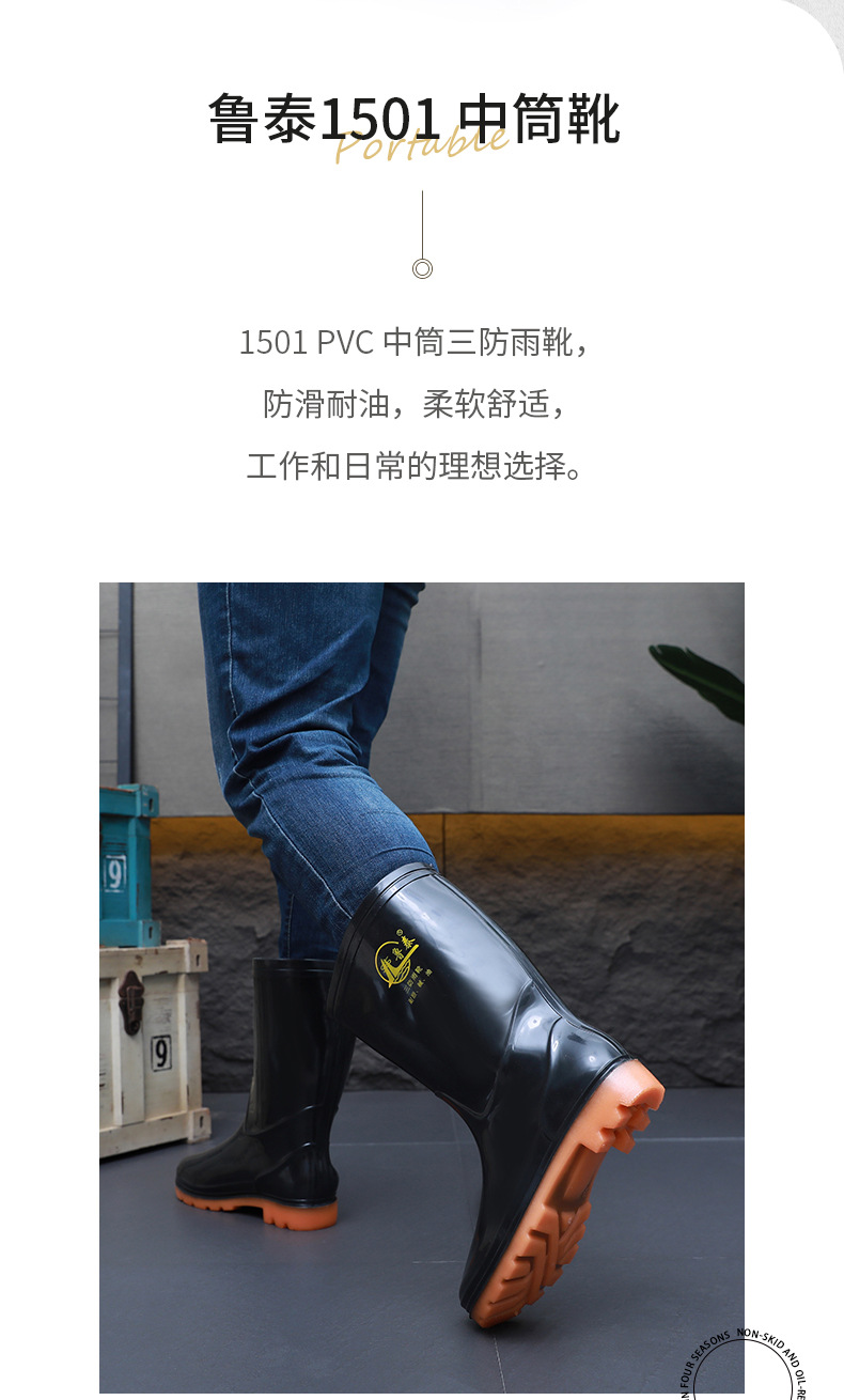 방수 및 미끄럼 방지 덧신, 두꺼운 워터슈즈 1501, 편안하고 내마모성이 뛰어난 건설현장 고무신, PVC 중통 노동보호 장화, 고무신스토어 가기