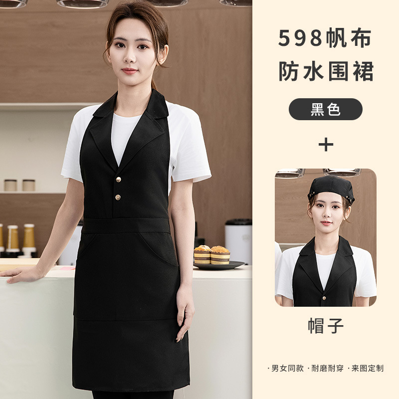 • XHHS-598 슈트 칼라 앞치마 블랙 + XHHS-3버튼 조절 메쉬캡 블랙