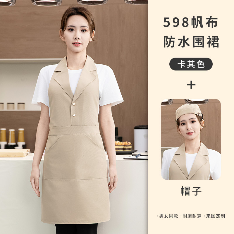 • XHHS-598 슈트 칼라 앞치마 카라멜 컬러 + XHHS-3버튼 조절 메쉬 모자 카라멜