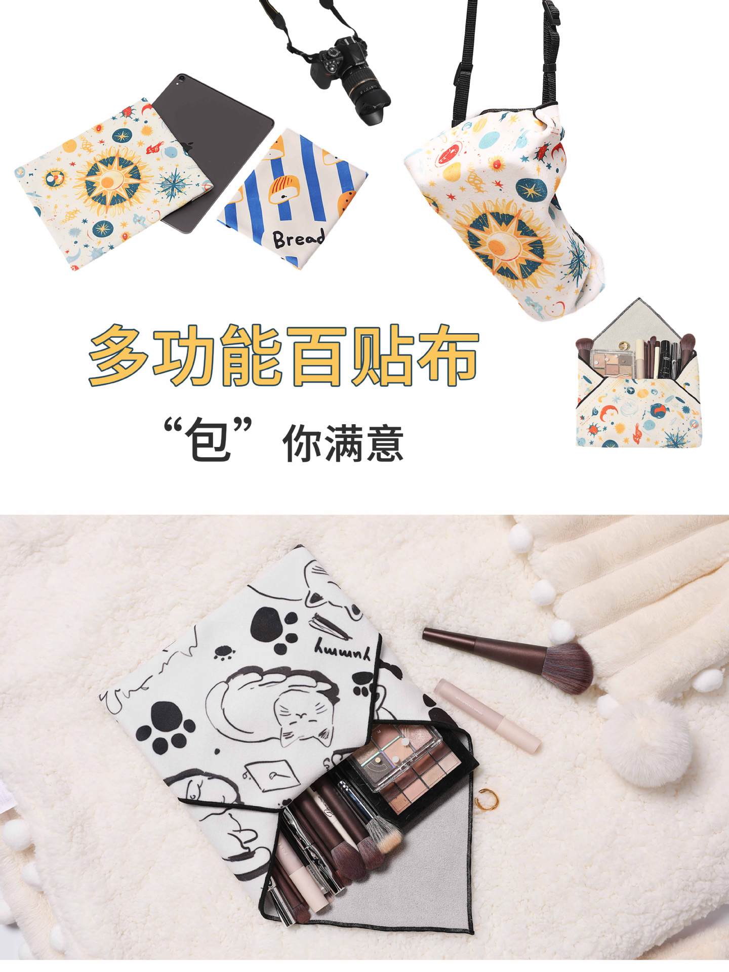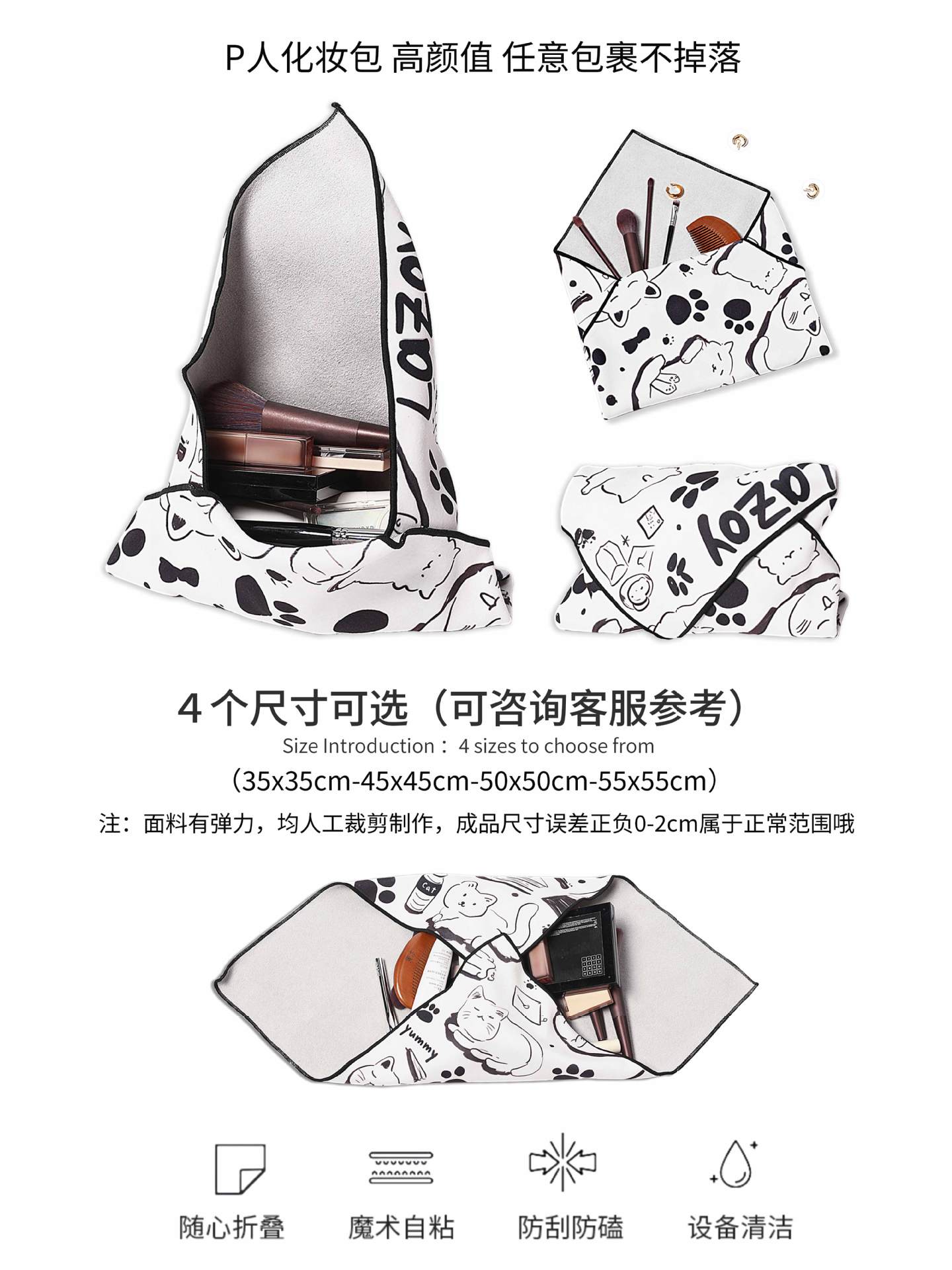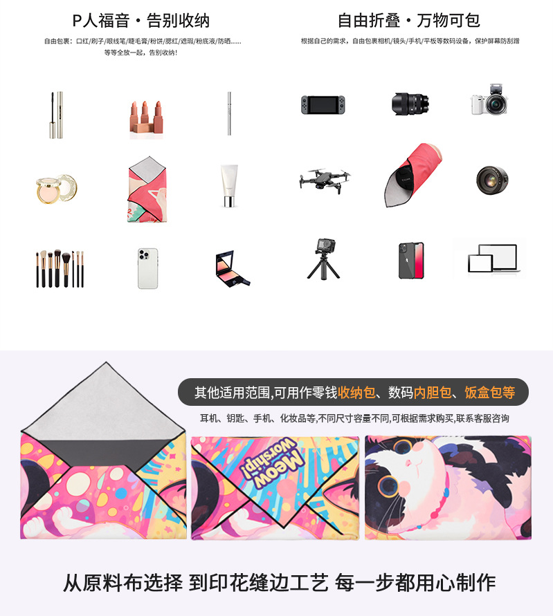 맞춤형 화장품 가방, 마법의 천, 자체 접착 천, 다기능 보관 가방, SLR 카메라 휴대용 포장 천