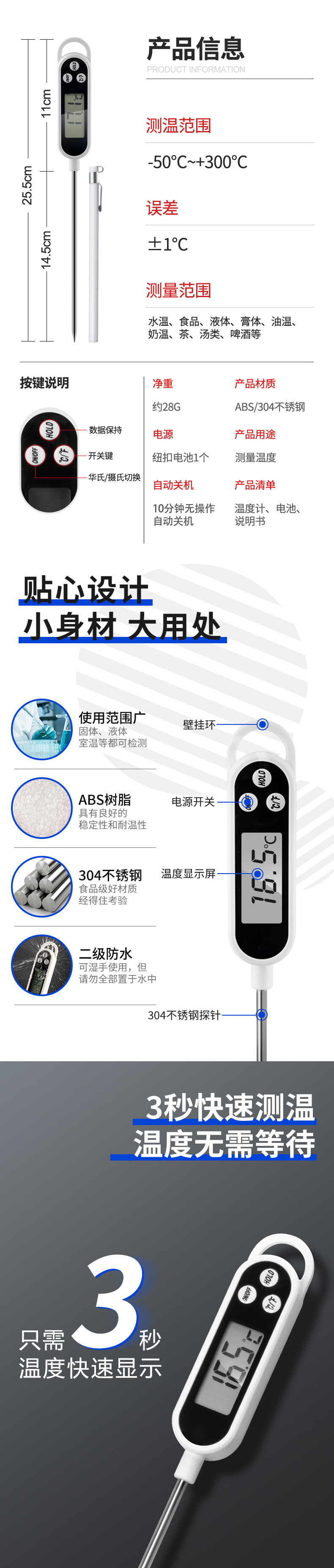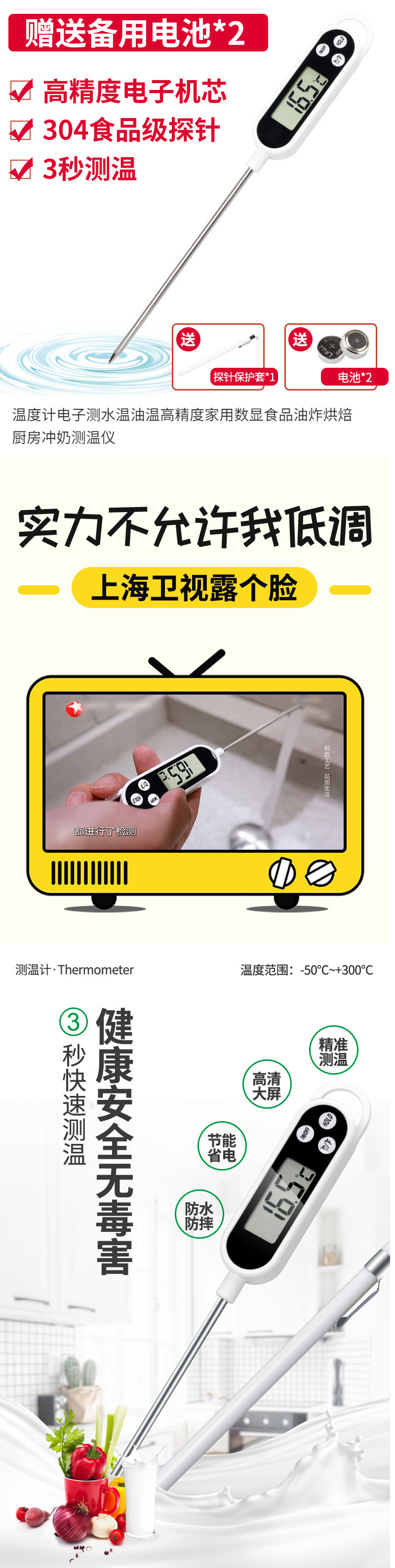 온도계 가정용 수온 및 오일 온도 측정 고정밀 전자 디지털 디스플레이 식품 튀김 베이킹 주방 우유 온도계스토어 가기