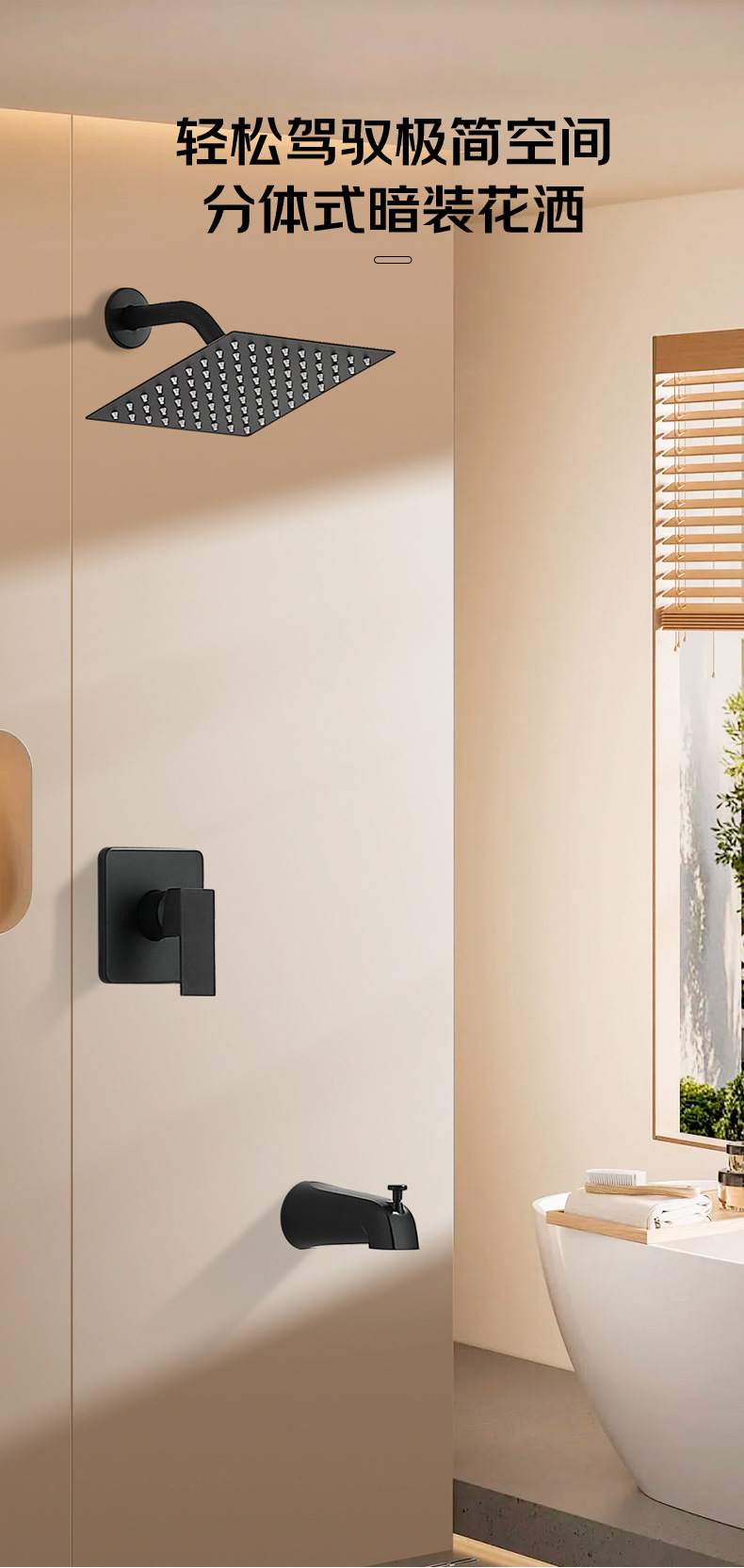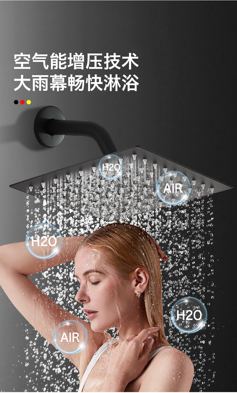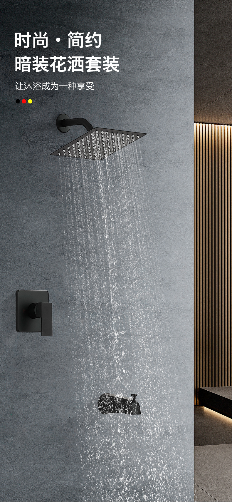 • 3단 블랙 사각 숨겨진 샤워 세트
