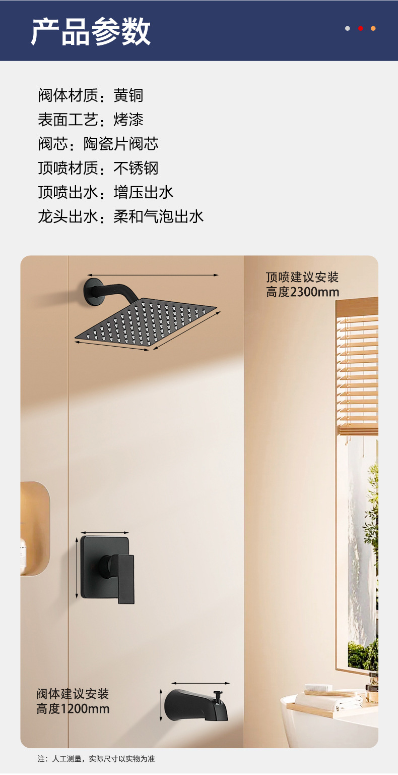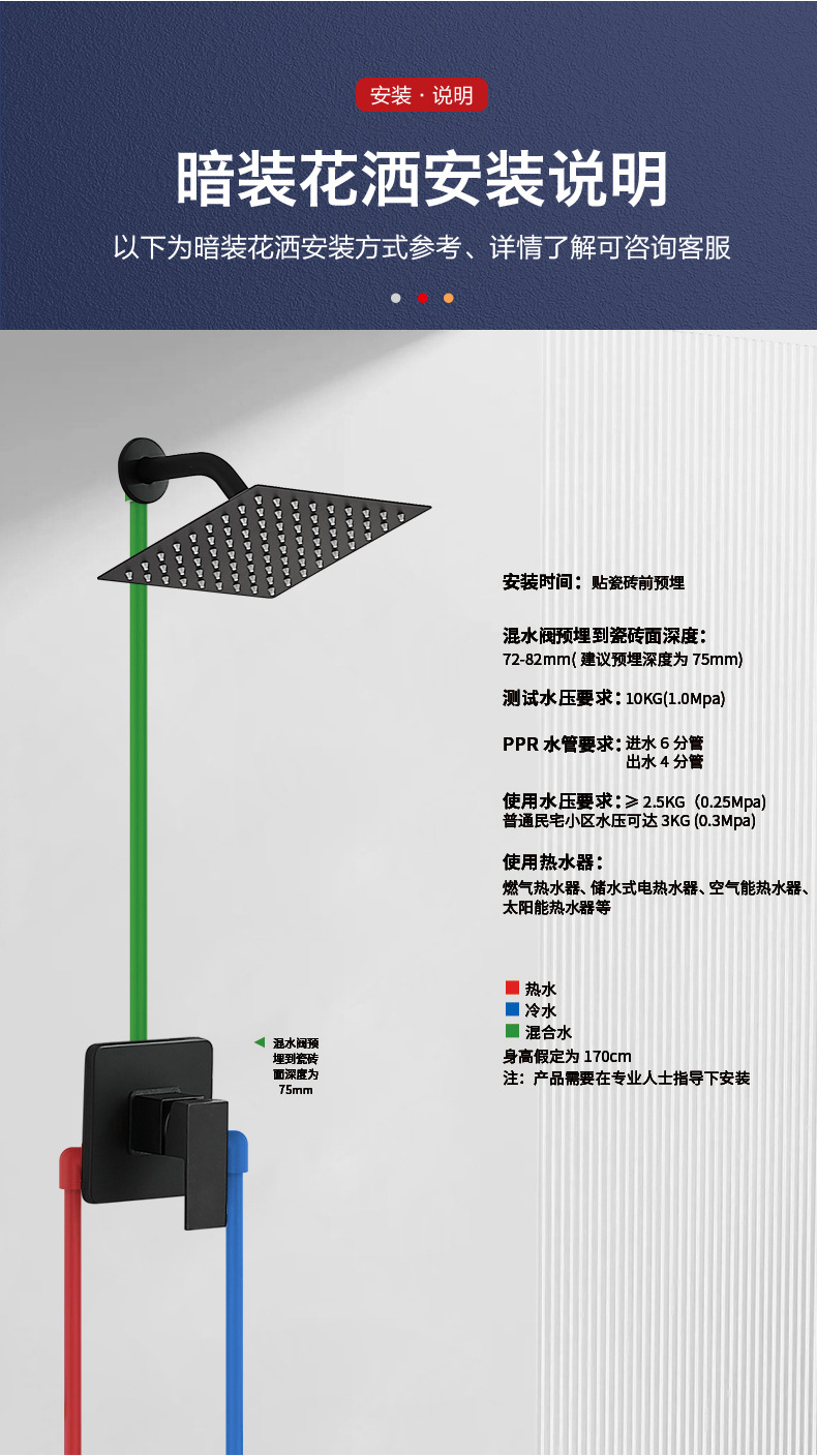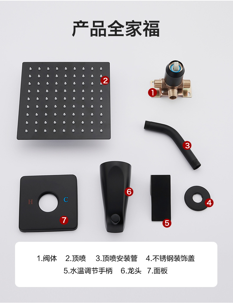• 3단 블랙 사각 숨겨진 샤워 세트