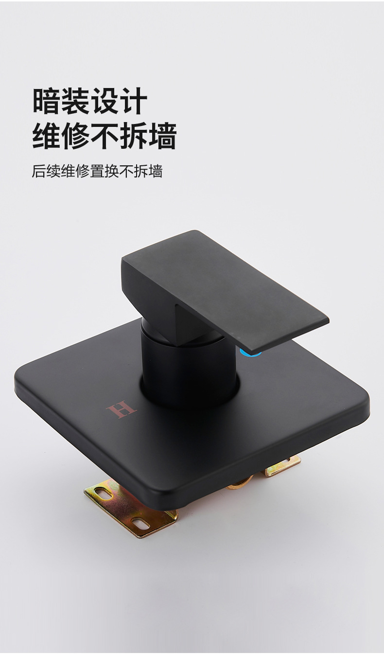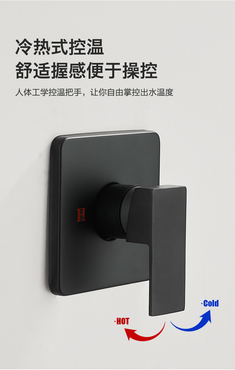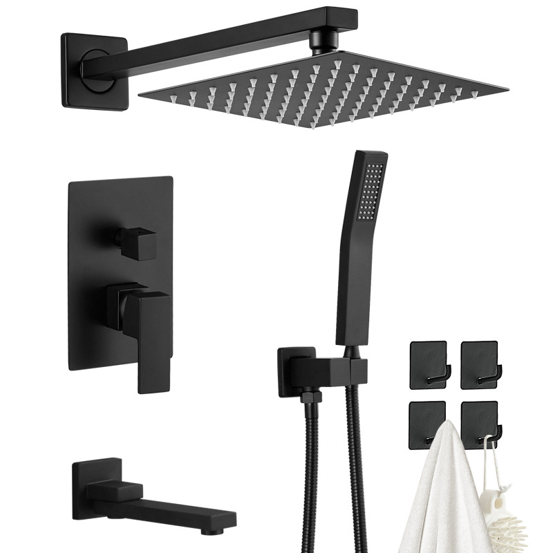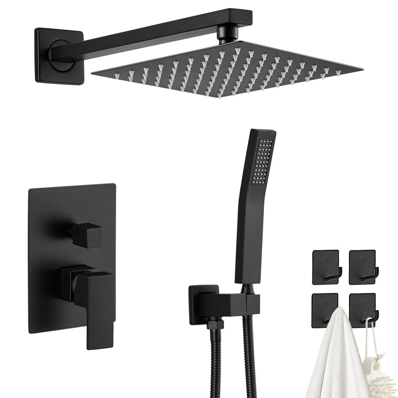 • 후크가 있는 단일 기능 검정색 사각형 숨겨진 샤워 헤드