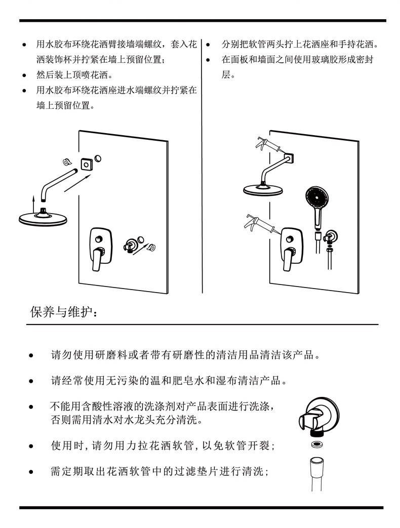 • 2단 블랙 사각 숨겨진 샤워 세트