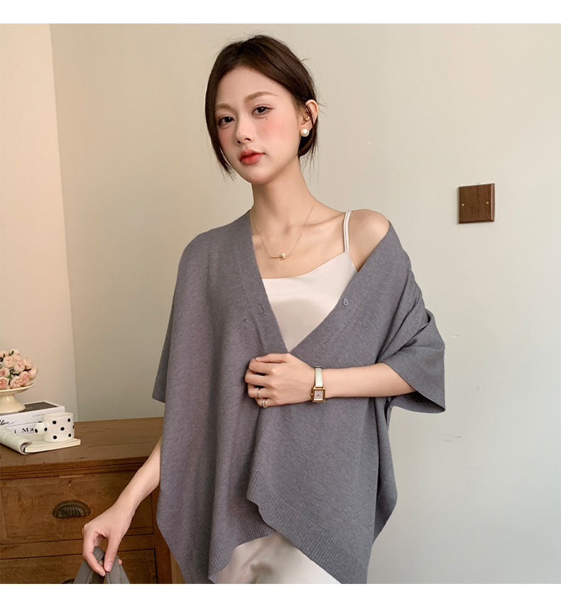숄 니트 하이엔드 신형 버튼 루즈 솔리드 컬러 얇은 케이프 가디건 자외선 차단 의류 아우터 자외선 차단 숄