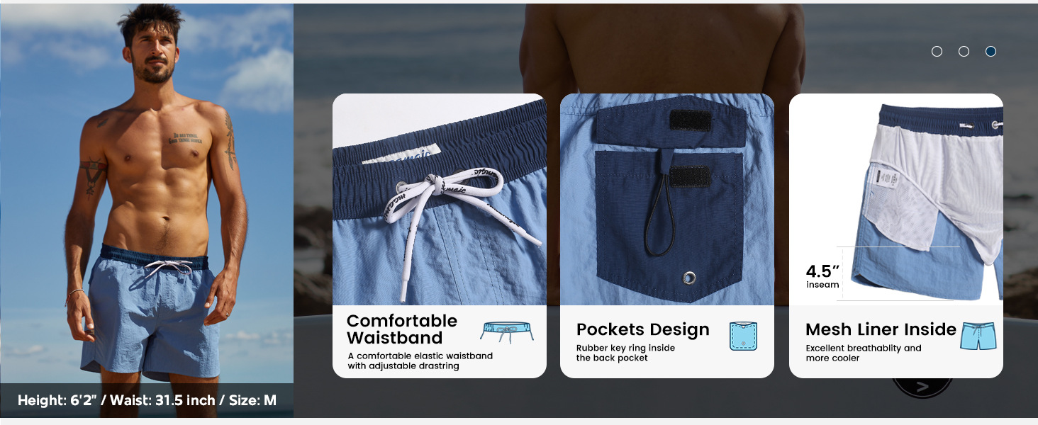 남성용 수영 트렁크 5inch 메쉬 안감이 있는 짧은 스타일 속건성 수영 바지 남성용 비치 반바지 수영 장비스토어 가기