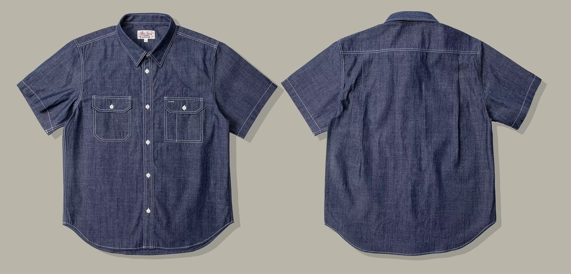 일본 복고풍 트렌디 브랜드 워크 셔츠 여름 루즈한 데님 반팔 셔츠 예술적 젊은 남성과 여성 레이어드 재킷스토어 가기