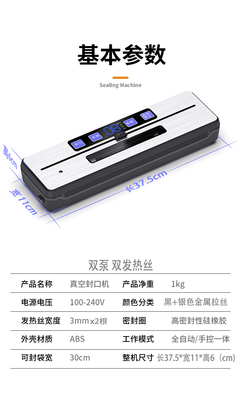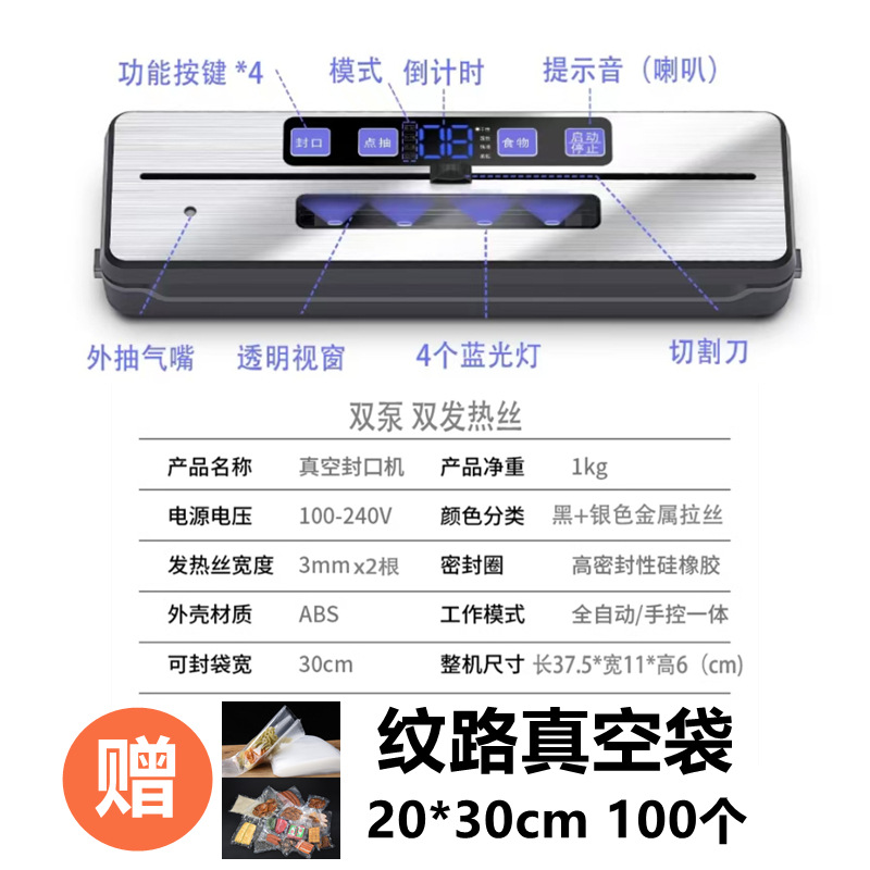 • 이중 펌프 및 이중 밀봉 모델 + 진공 백 50개(15*20cm), 외부 펌핑 튜브 + 스폰지 스트립 포함