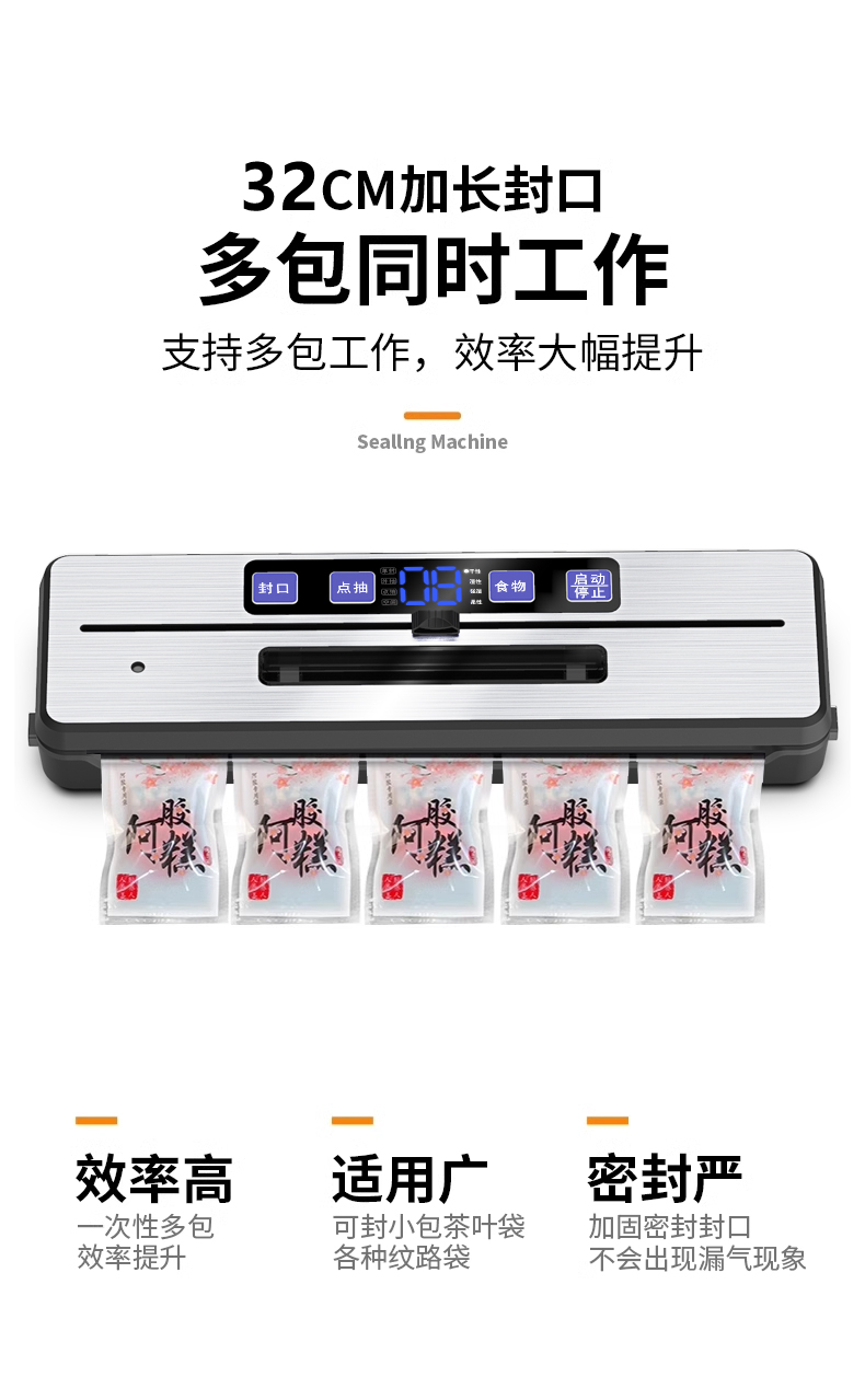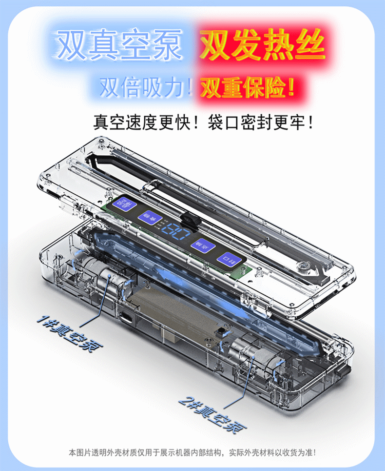 • 이중 펌프 및 이중 밀봉 모델 + 외부 펌핑 튜브 + 스폰지 스트립이 포함된 진공 백 5개(17*25cm)